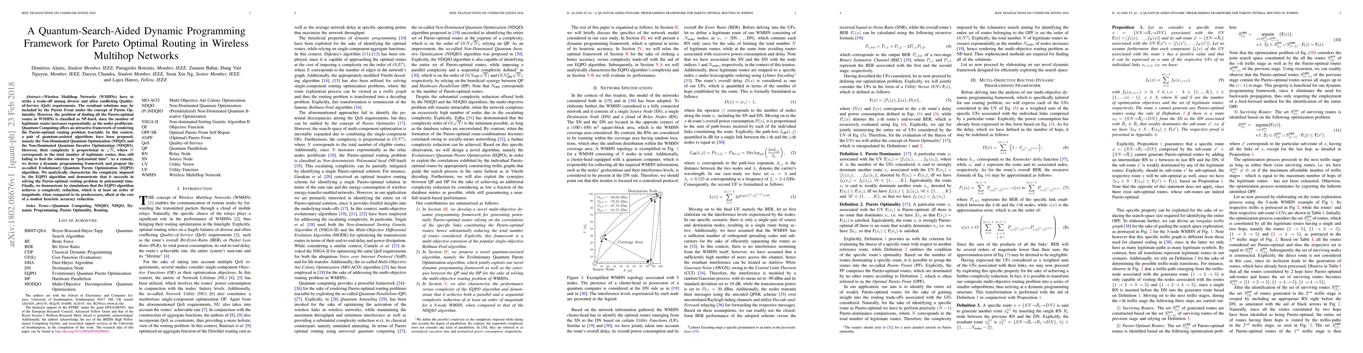 Wireless Multihop Networks (WMHNs) have to strike a trade-off among diverse and often conflicting Quality-of-Service (QoS) requirements. The resultant solutions may be included by the Pareto Front under the concept of Pareto Optimality. However, the problem of finding all the Pareto-optimal routes in WMHNs is classified as NP-hard, since the number of legitimate routes increases exponentially, as the nodes proliferate. Quantum Computing offers an attractive framework of rendering the Pareto-optimal routing problem tractable. In this context, a pair of quantum-assisted algorithms have been proposed, namely the Non-Dominated Quantum Optimization (NDQO) and the Non-Dominated Quantum Iterative Optimization (NDQIO). However, their complexity is proportional to $\sqrt{N}$, where $N$ corresponds to the total number of legitimate routes, thus still failing to find the solutions in "polynomial time". As a remedy, we devise a dynamic programming framework and propose the so-called Evolutionary Quantum Pareto Optimization (EQPO) algorithm. We analytically characterize the complexity imposed by the EQPO algorithm and demonstrate that it succeeds in solving the Pareto-optimal routing problem in polynomial time. Finally, we demonstrate by simulations that the EQPO algorithm achieves a complexity reduction, which is at least an order of magnitude, when compared to its predecessors, albeit at the cost of a modest heuristic accuracy reduction.