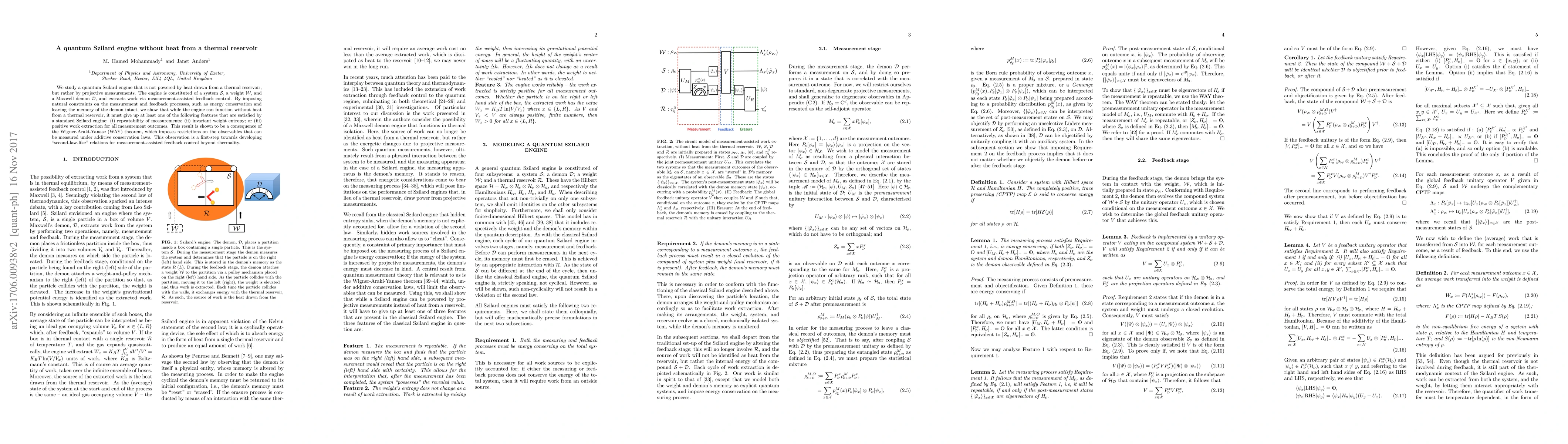 This paper explores a quantum Szilard engine powered by projective measurements instead of thermal heat, revealing that it must sacrifice certain standard Szilard engine features due to the Wigner-Araki-Yanase theorem, thus advancing the understanding of non-thermal work extraction.