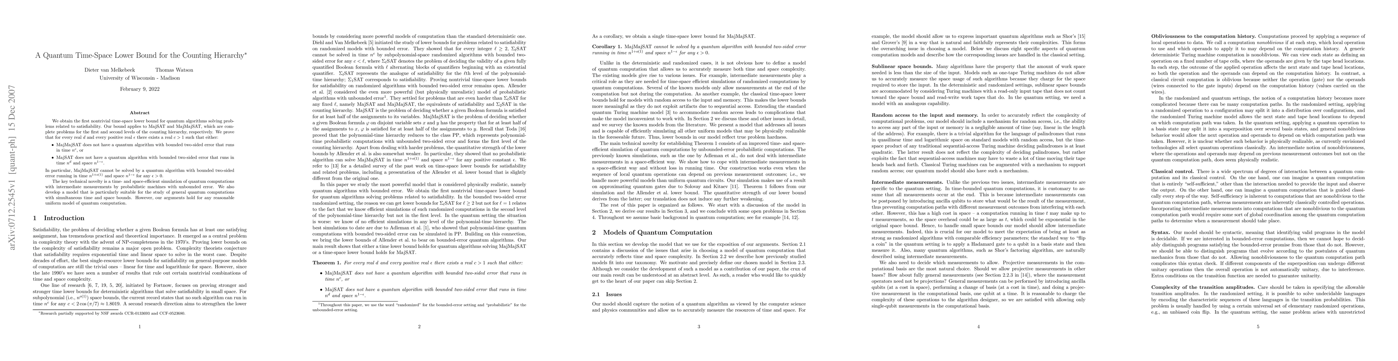This paper establishes a quantum time-space lower bound for solving satisfiability problems, showing that certain problems cannot be solved with bounded error using quantum algorithms within specific time and space constraints.