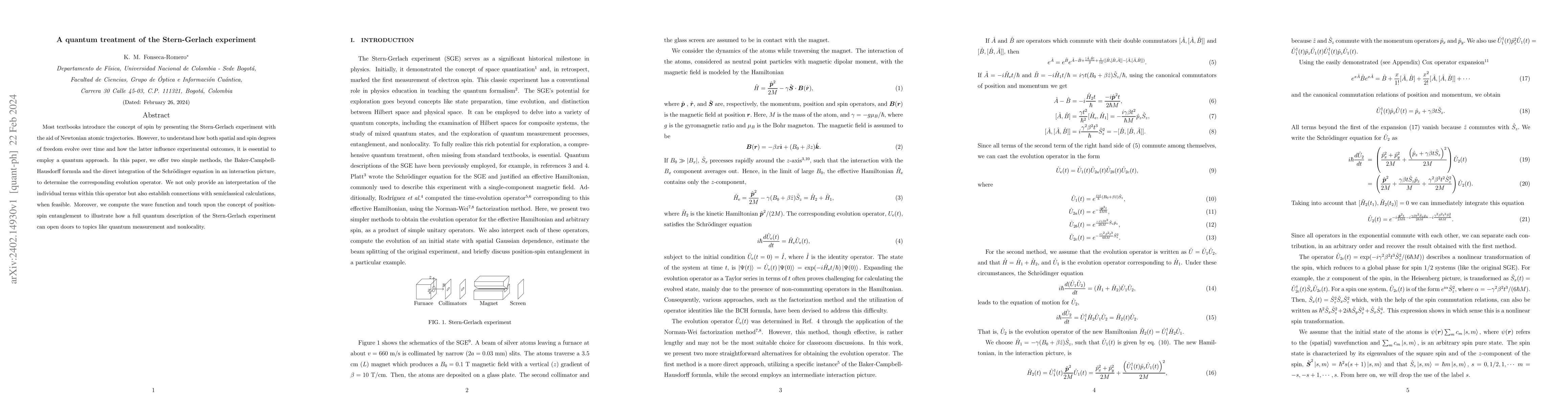 Most textbooks introduce the concept of spin by presenting the Stern-Gerlach experiment with the aid of Newtonian atomic trajectories. However, to understand how both spatial and spin degrees of freedom evolve over time and how the latter influence experimental outcomes, it is essential to employ a quantum approach. In this paper, we offer two simple methods, the Baker-Campbell-Hausdorff formula and the direct integration of the Schr\"odinger equation in an interaction picture, to determine the corresponding evolution operator. We not only provide an interpretation of the individual terms within this operator but also establish connections with semiclassical calculations, when feasible. Moreover, we compute the wave function and touch upon the concept of position-spin entanglement to illustrate how a full quantum description of the Stern-Gerlach experiment can open doors to topics like quantum measurement and nonlocality.