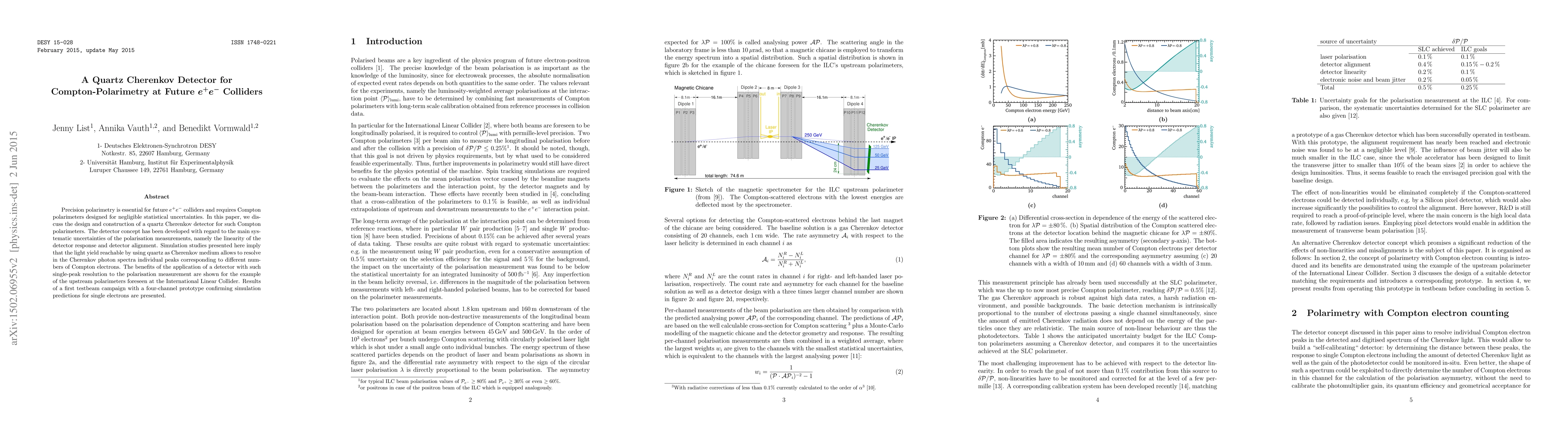 This paper details the design of a quartz Cherenkov detector for Compton polarimetry at future e+e- colliders, emphasizing its ability to resolve individual peaks in Cherenkov photon spectra for precise polarization measurements. Initial test results from a prototype confirm the detector's potential to minimize systematic uncertainties.