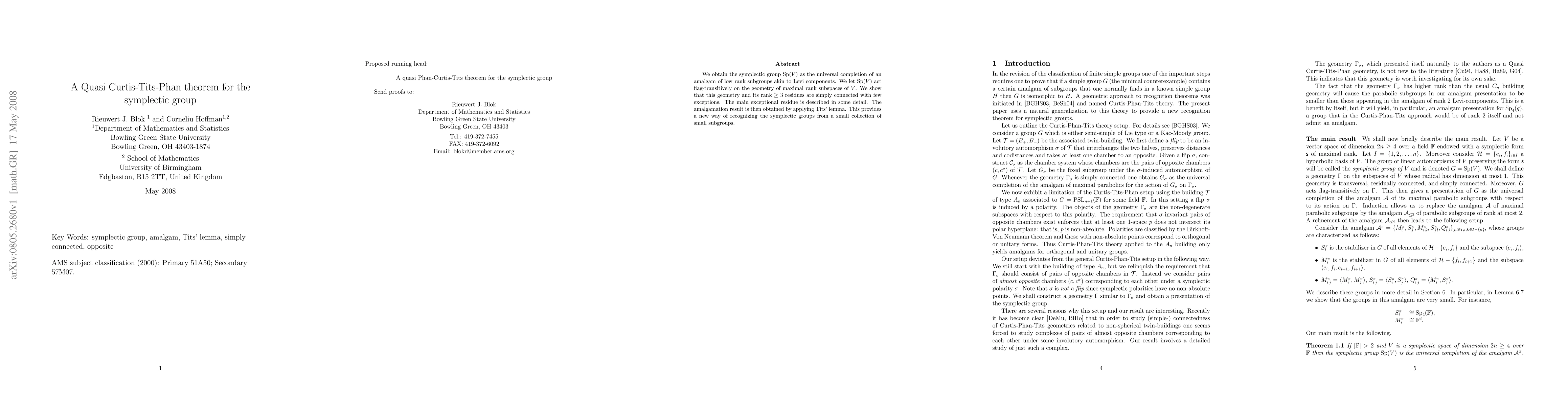 Researchers prove that symplectic groups can be described using a unique amalgamation of small subgroups, leading to new insights into the geometry of maximal rank subspaces and recognizing these groups.