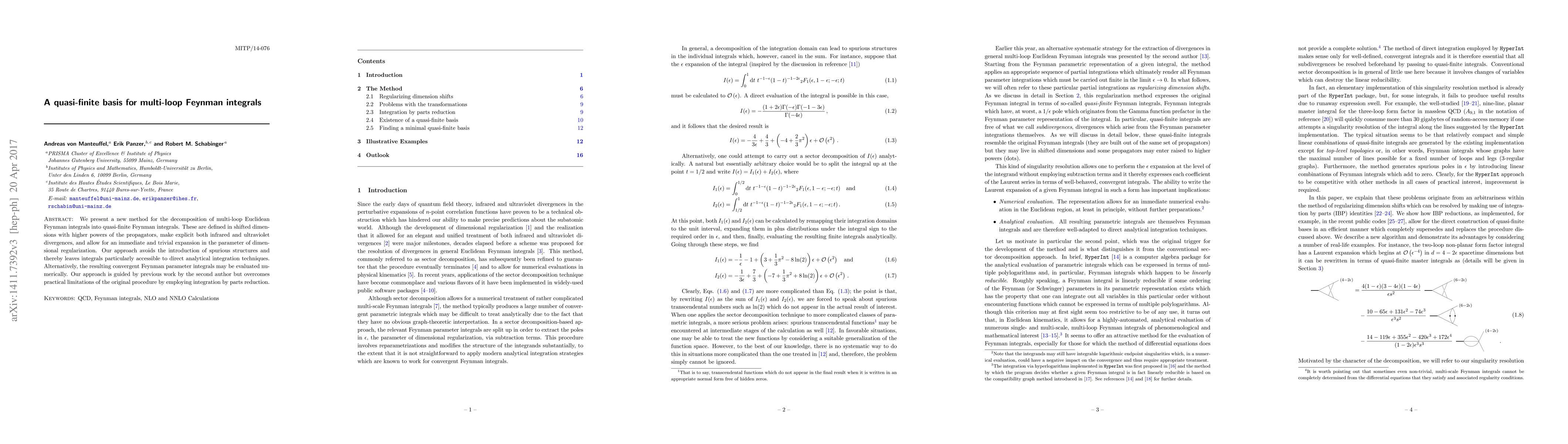 We present a new method for the decomposition of multi-loop Euclidean Feynman integrals into quasi-finite Feynman integrals. These are defined in shifted dimensions with higher powers of the propagators, make explicit both infrared and ultraviolet divergences, and allow for an immediate and trivial expansion in the parameter of dimensional regularization. Our approach avoids the introduction of spurious structures and thereby leaves integrals particularly accessible to direct analytical integration techniques. Alternatively, the resulting convergent Feynman parameter integrals may be evaluated numerically. Our approach is guided by previous work by the second author but overcomes practical limitations of the original procedure by employing integration by parts reduction.