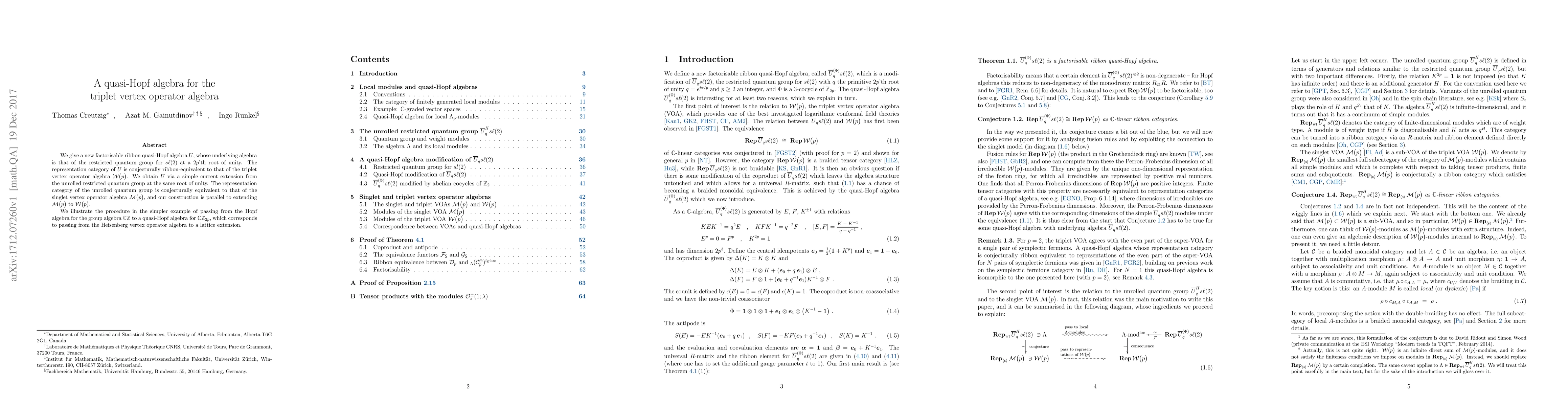 We give a new factorisable ribbon quasi-Hopf algebra U, whose underlying algebra is that of the restricted quantum group for sl(2) at a 2p'th root of unity. The representation category of U is conjecturally ribbon-equivalent to that of the triplet vertex operator algebra W(p). We obtain U via a simple current extension from the unrolled restricted quantum group at the same root of unity. The representation category of the unrolled quantum group is conjecturally equivalent to that of the singlet vertex operator algebra M(p), and our construction is parallel to extending M(p) to W(p). We illustrate the procedure in the simpler example of passing from the Hopf algebra for the group algebra CZ to a quasi-Hopf algebra for CZ_{2p}, which corresponds to passing from the Heisenberg vertex operator algebra to a lattice extension.