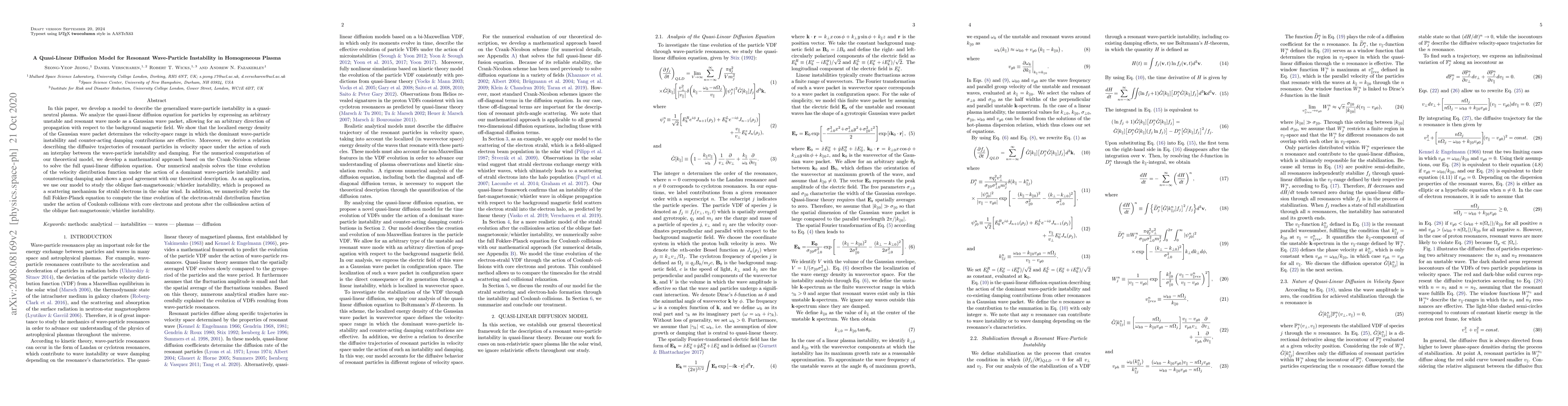 In this paper, we develop a model to describe the generalized wave-particle instability in a quasi-neutral plasma. We analyze the quasi-linear diffusion equation for particles by expressing an arbitrary unstable and resonant wave mode as a Gaussian wave packet, allowing for an arbitrary direction of propagation with respect to the background magnetic field. We show that the localized energy density of the Gaussian wave packet determines the velocity-space range in which the dominant wave-particle instability and counter-acting damping contributions are effective. Moreover, we derive a relation describing the diffusive trajectories of resonant particles in velocity space under the action of such an interplay between the wave-particle instability and damping. For the numerical computation of our theoretical model, we develop a mathematical approach based on the Crank-Nicolson scheme to solve the full quasi-linear diffusion equation. Our numerical analysis solves the time evolution of the velocity distribution function under the action of a dominant wave-particle instability and counteracting damping and shows a good agreement with our theoretical description. As an application, we use our model to study the oblique fast-magnetosonic/whistler instability, which is proposed as a scattering mechanism for strahl electrons in the solar wind. In addition, we numerically solve the full Fokker-Planck equation to compute the time evolution of the electron-strahl distribution function under the action of Coulomb collisions with core electrons and protons after the collisionless action of the oblique fast-magnetosonic/whistler instability.