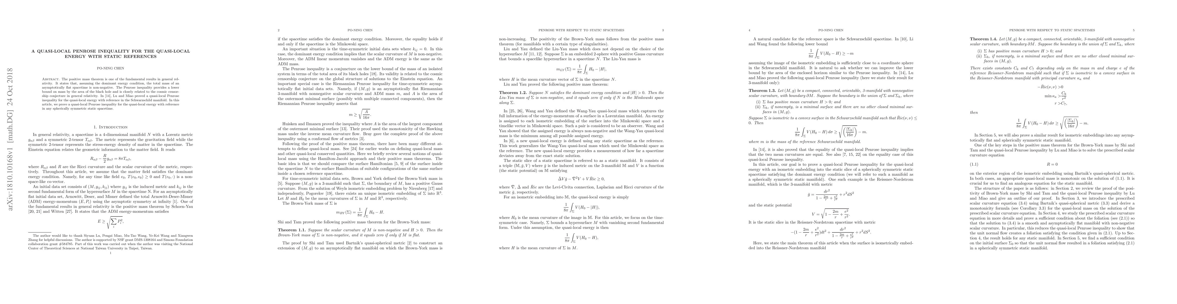 This paper proves a quasi-local Penrose inequality for the quasi-local energy in any spherically symmetric static spacetime, extending previous results to more general settings beyond the Schwarzschild manifold. The work is significant for understanding mass bounds and the cosmic censorship conjecture in general relativity.