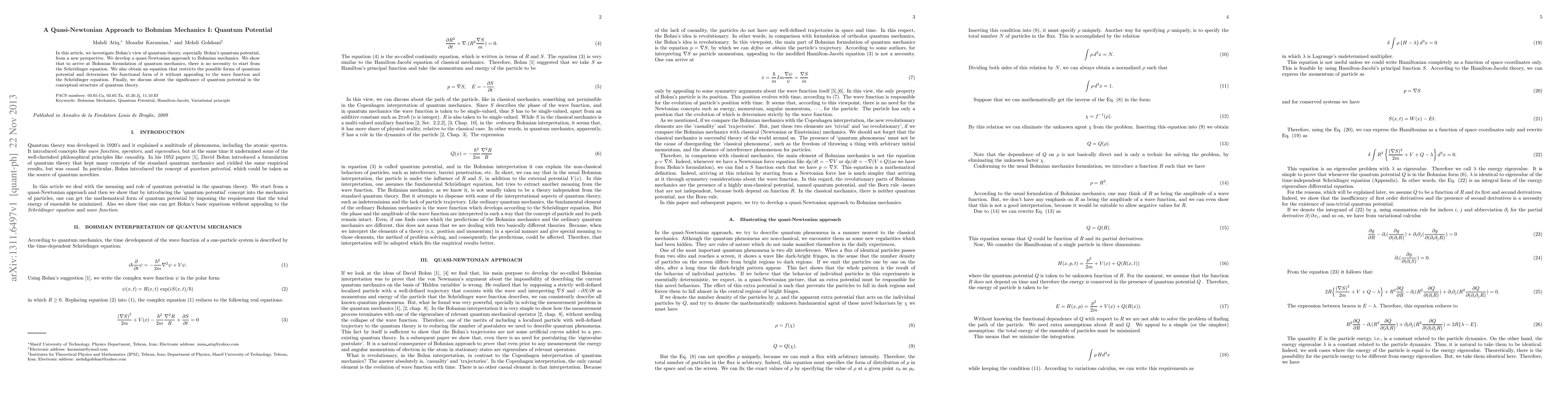 This paper develops a quasi-Newtonian approach to Bohmian mechanics, showing that quantum potential can determine its functional form without relying on the Schr"odinger equation. It restricts possible forms of quantum potential and discusses its significance in quantum theory.
