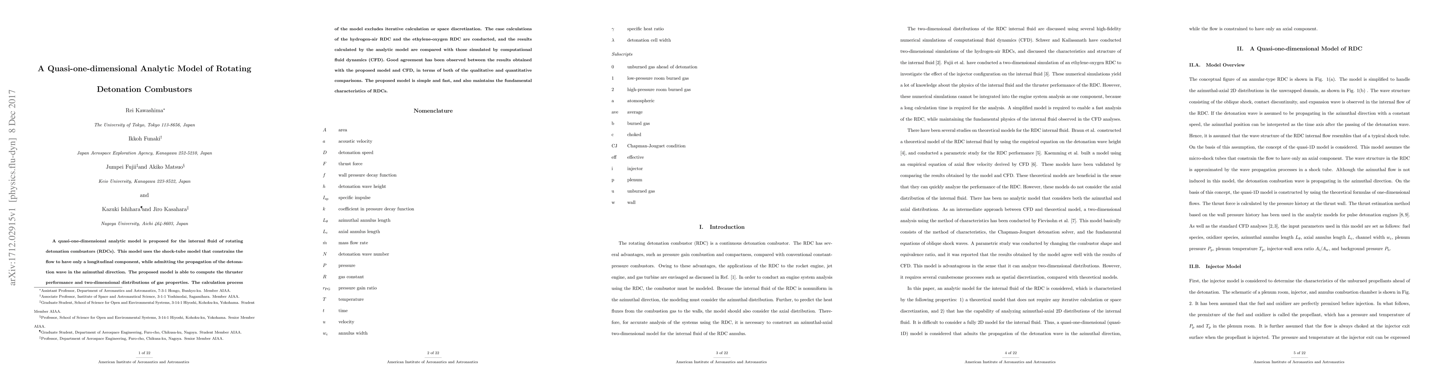 The paper proposes a quasi-one-dimensional analytic model for rotating detonation combustors (RDCs) that simplifies the computational fluid dynamics (CFD) process, showing good agreement with CFD simulations for hydrogen-air and ethylene-oxygen RDCs. The model efficiently computes thruster performance and gas property distributions without iterative calculations.