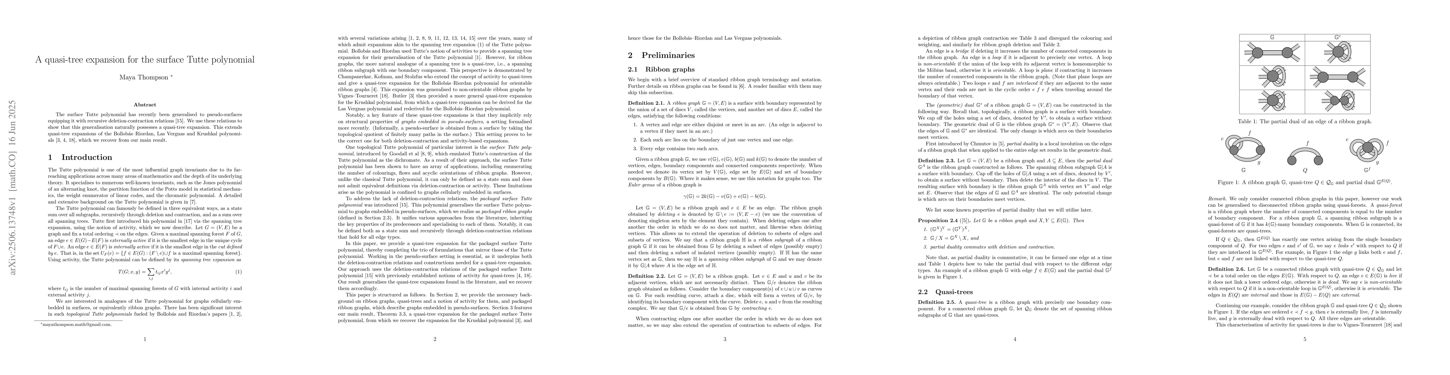 The surface Tutte polynomial has recently been generalised to pseudo-surfaces equipping it with recursive deletion-contraction relations. We use these relations to show that this generalisation naturally possesses a quasi-tree expansion. This extends quasi-tree expansions of the Bollob\'as-Riordan, Las Vergnas and Krushkal polynomials, which we recover from our main result.
