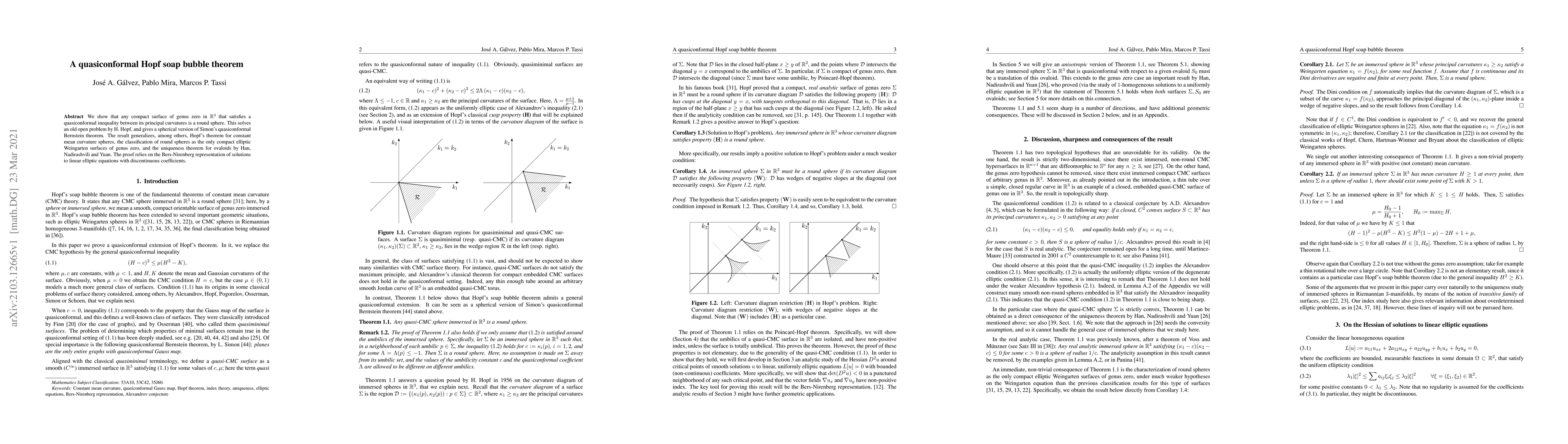 The paper proves that a compact surface of genus zero in 3D Euclidean space with certain curvature properties is always a round sphere, solving an old problem by H. Hopf.