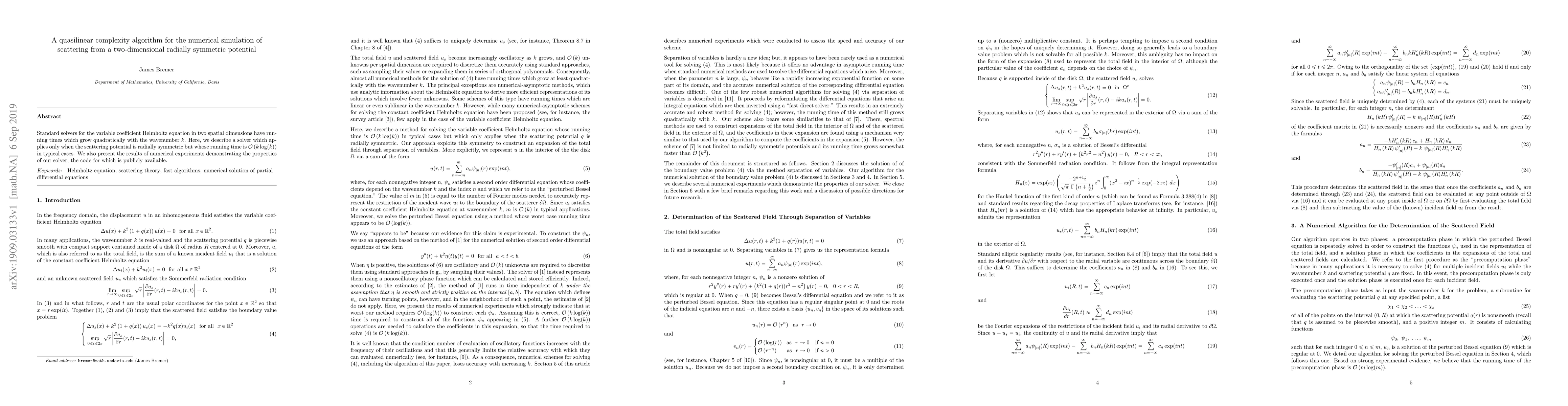 Researchers developed an algorithm for simulating scattering from radially symmetric potentials with a time complexity of O(k log(k)), significantly improving on the quadratic time complexity of standard solvers.