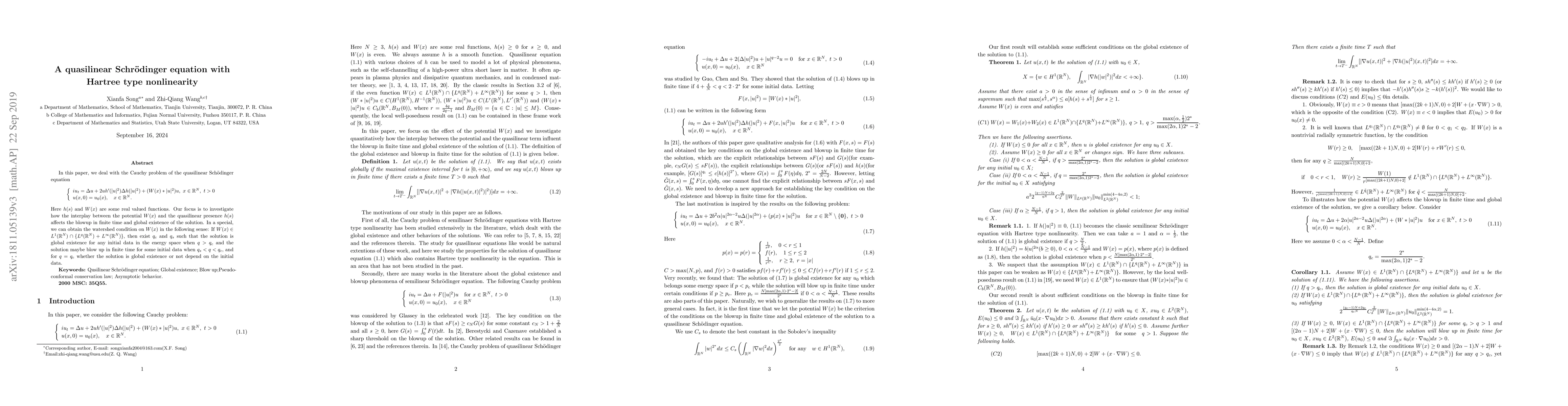 iu_t=\Delta u+2uh'(|u|^2)\Delta h(|u|^2)+(W(x)\ast|u|^2)u,\ x\in \mathbb{R}^N,\