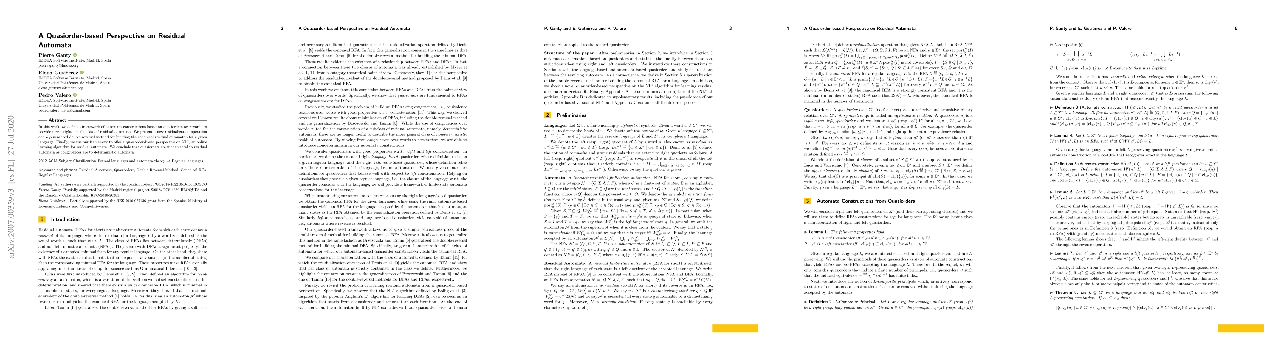 Researchers develop a framework for analyzing residual automata using quasiorders, revealing their fundamental connection to congruences in deterministic automata.