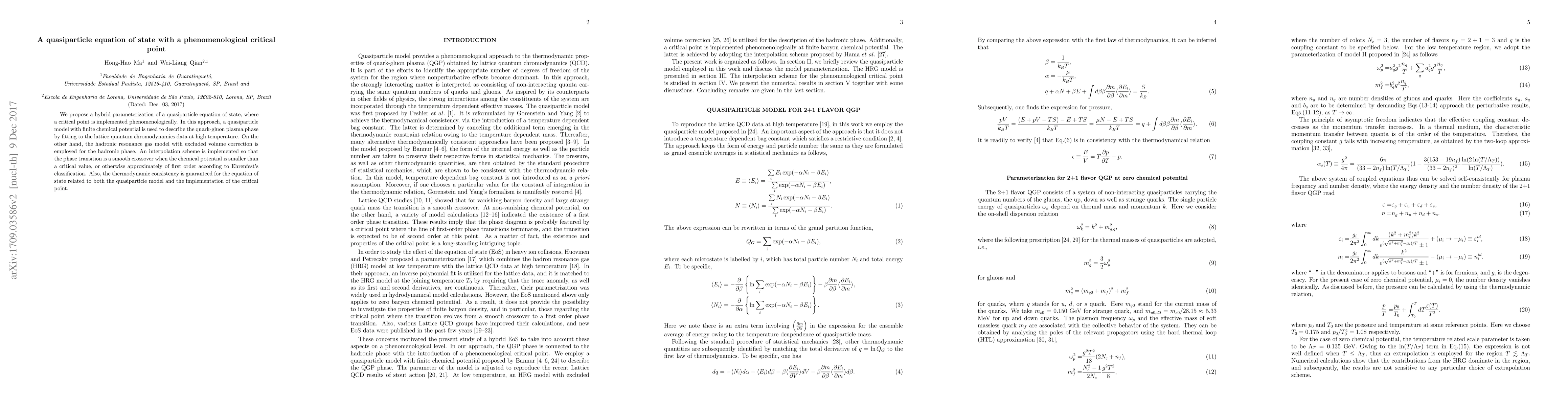 The key novelty of this work lies in the implementation of a phenomenological critical point within a hybrid quasiparticle-hadron resonance gas equation of state, allowing for a consistent description of both high-temperature quark-gluon plasma and low-temperature hadronic phases.