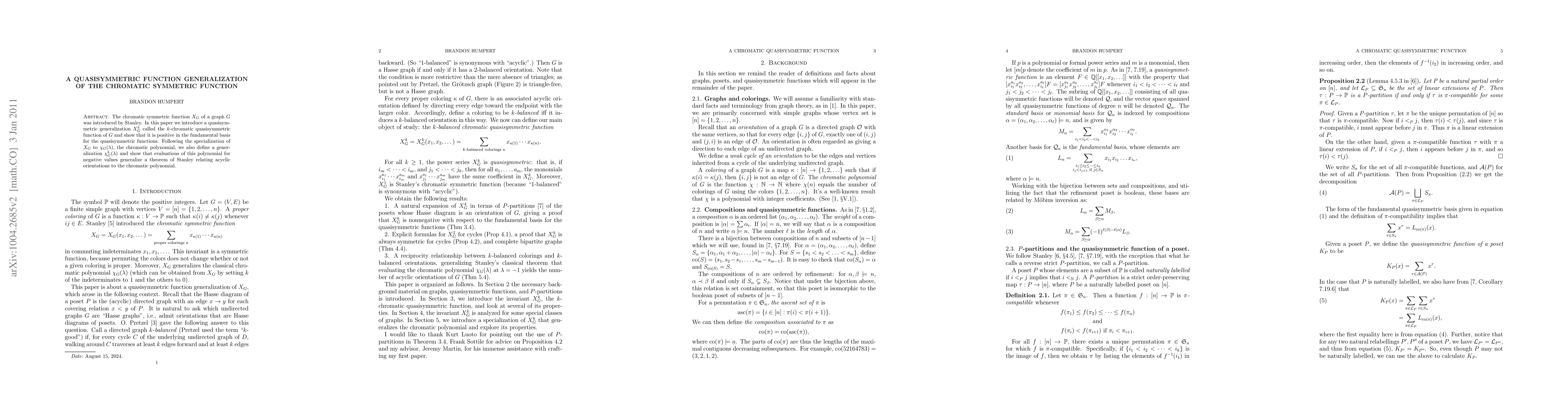 The chromatic symmetric function $X_G$ of a graph $G$ was introduced by Stanley. In this paper we introduce a quasisymmetric generalization $X^k_G$ called the $k$-chromatic quasisymmetric function of $G$ and show that it is positive in the fundamental basis for the quasisymmetric functions. Following the specialization of $X_G$ to $\chi_G(\lambda)$, the chromatic polynomial, we also define a generalization $\chi^k_G(\lambda)$ and show that evaluations of this polynomial for negative values generalize a theorem of Stanley relating acyclic orientations to the chromatic polynomial.