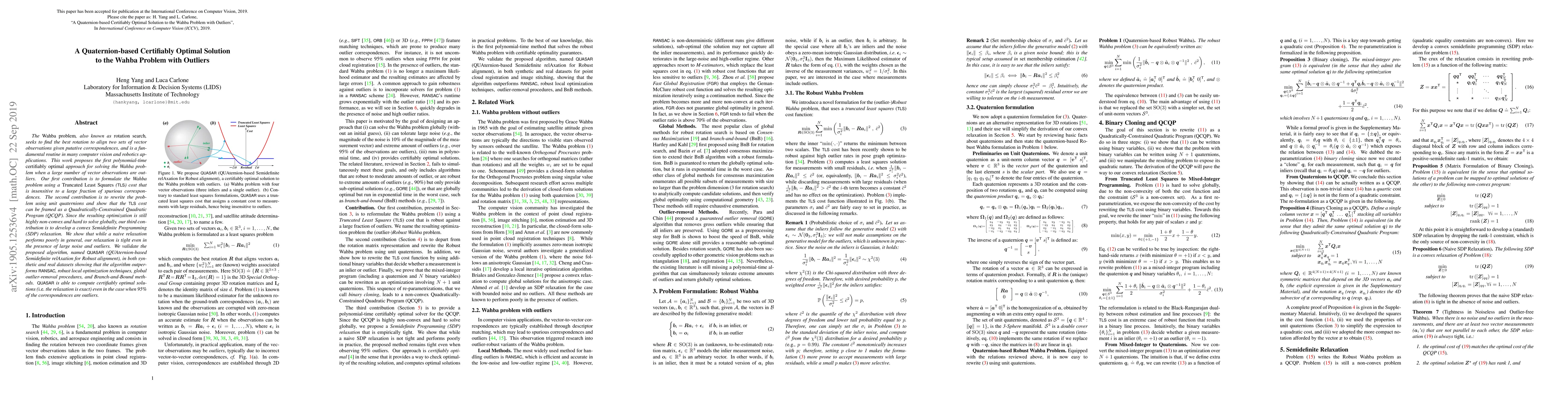 This paper presents a quaternion-based approach, QUASAR, for solving the Wahba problem robustly against outliers. It formulates the problem using a Truncated Least Squares cost and a convex Semidefinite Programming relaxation, achieving certifiably optimal solutions even when 95% of the observations are outliers.