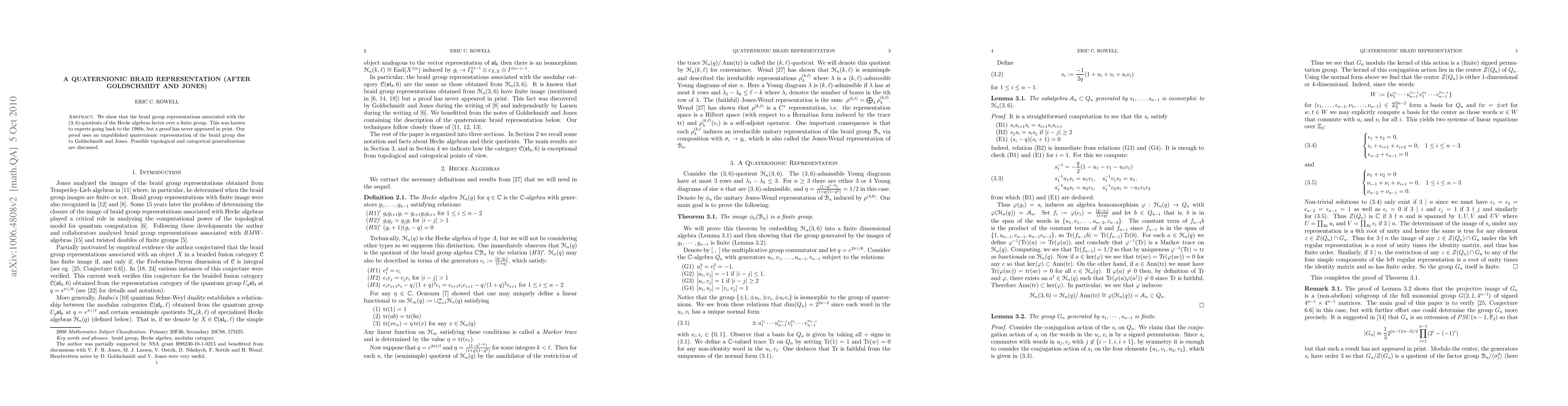 This paper reveals that braid group representations from (3,6)-quotients of Hecke algebras factor over a finite group, a fact previously known among experts but never proven in print. The proof leverages an unpublished quaternionic representation of the braid group by Goldschmidt and Jones, and explores potential topological and categorical extensions.