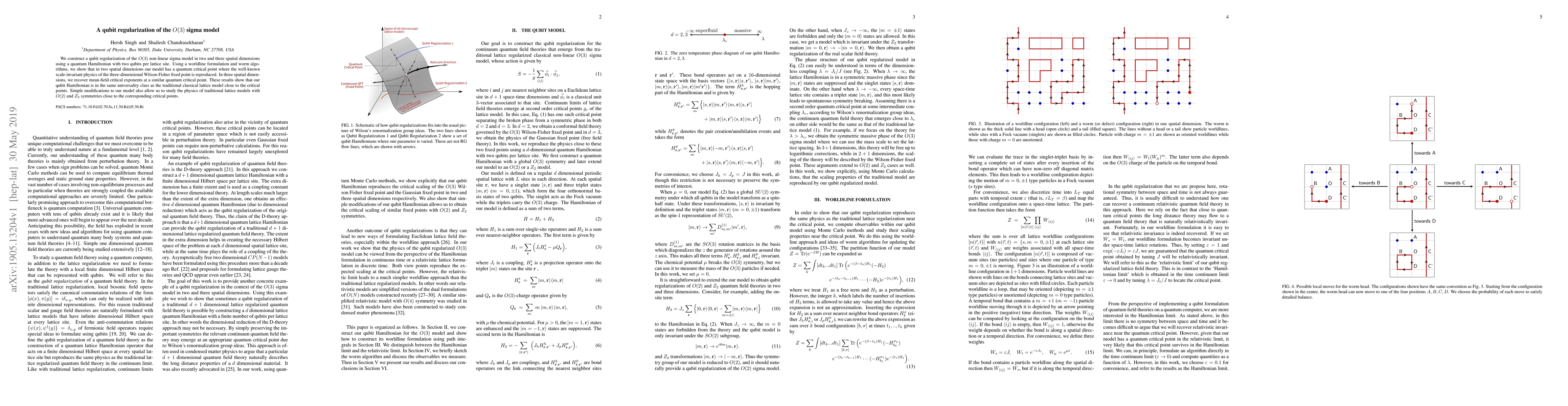 We construct a qubit regularization of the $O(3)$ non-linear sigma model in two and three spatial dimensions using a quantum Hamiltonian with two qubits per lattice site. Using a worldline formulation and worm algorithms, we show that in two spatial dimensions our model has a quantum critical point where the well-known scale-invariant physics of the three-dimensional Wilson-Fisher fixed point is reproduced. In three spatial dimensions, we recover mean-field critical exponents at a similar quantum critical point. These results show that our qubit Hamiltonian is in the same universality class as the traditional classical lattice model close to the critical points. Simple modifications to our model also allow us to study the physics of traditional lattice models with $O(2)$ and $Z_2$ symmetries close to the corresponding critical points.