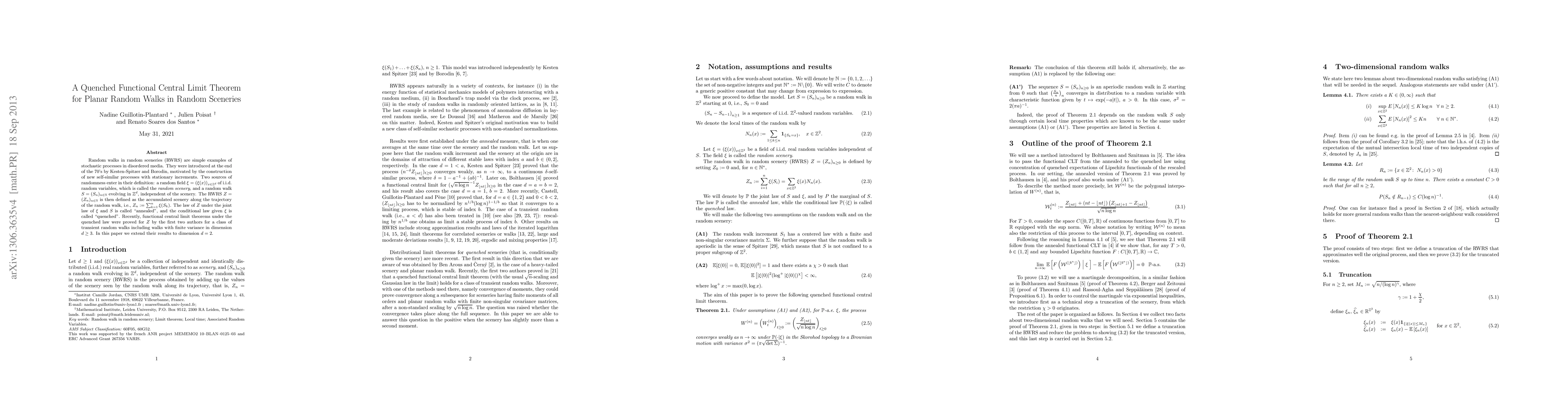 This paper extends the quenched functional central limit theorem to planar random walks in random sceneries, proving convergence to a Gaussian process under the quenched law for a class of transient random walks in two dimensions. This builds on previous results for higher dimensions.