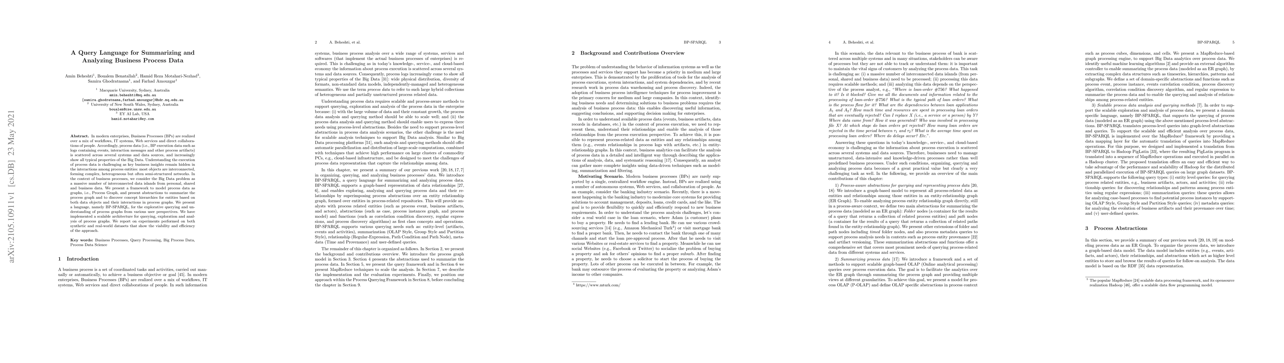 In modern enterprises, Business Processes (BPs) are realized over a mix of workflows, IT systems, Web services and direct collaborations of people. Accordingly, process data (i.e., BP execution data such as logs containing events, interaction messages and other process artifacts) is scattered across several systems and data sources, and increasingly show all typical properties of the Big Data. Understanding the execution of process data is challenging as key business insights remain hidden in the interactions among process entities: most objects are interconnected, forming complex, heterogeneous but often semi-structured networks. In the context of business processes, we consider the Big Data problem as a massive number of interconnected data islands from personal, shared and business data. We present a framework to model process data as graphs, i.e., Process Graph, and present abstractions to summarize the process graph and to discover concept hierarchies for entities based on both data objects and their interactions in process graphs. We present a language, namely BP-SPARQL, for the explorative querying and understanding of process graphs from various user perspectives. We have implemented a scalable architecture for querying, exploration and analysis of process graphs. We report on experiments performed on both synthetic and real-world datasets that show the viability and efficiency of the approach.