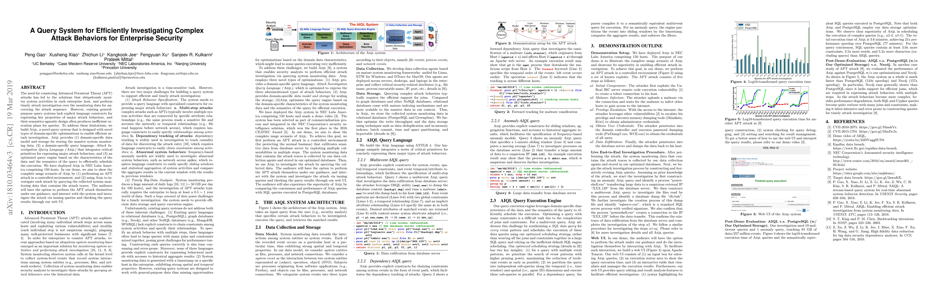 The need for countering Advanced Persistent Threat (APT) attacks has led to the solutions that ubiquitously monitor system activities in each enterprise host, and perform timely attack investigation over the monitoring data for uncovering the attack sequence. However, existing general-purpose query systems lack explicit language constructs for expressing key properties of major attack behaviors, and their semantics-agnostic design often produces inefficient execution plans for queries. To address these limitations, we build AIQL, a novel query system that is designed with novel types of domain-specific optimizations to enable efficient attack investigation. AIQL provides (1) domain-specific data model and storage for storing the massive system monitoring data, (2) a domain-specific query language, Attack Investigation Query Language (AIQL) that integrates critical primitives for expressing major attack behaviors, and (3) an optimized query engine based on the characteristics of the data and the semantics of the query to efficiently schedule the execution. We have deployed AIQL in NEC Labs America comprising 150 hosts. In our demo, we aim to show the complete usage scenario of AIQL by (1) performing an APT attack in a controlled environment, and (2) using AIQL to investigate such attack by querying the collected system monitoring data that contains the attack traces. The audience will have the option to perform the APT attack themselves under our guidance, and interact with the system and investigate the attack via issuing queries and checking the query results through our web UI.