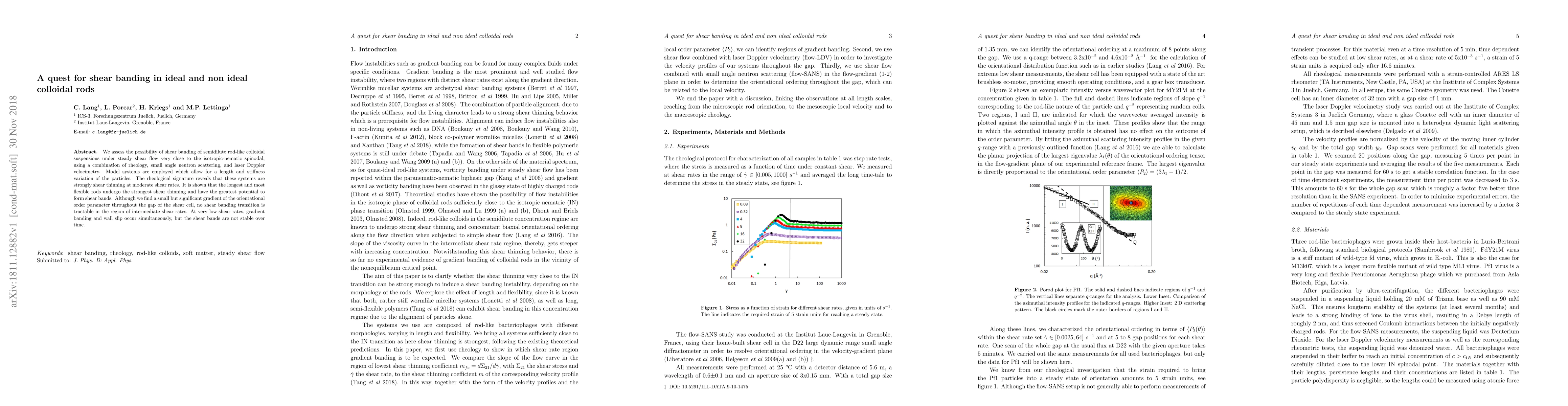This study investigates shear banding in rod-like colloidal suspensions near the isotropic-nematic phase transition using rheology and scattering techniques. While the longest and most flexible rods exhibit strong shear thinning, no stable shear banding transition occurs under intermediate shear rates.