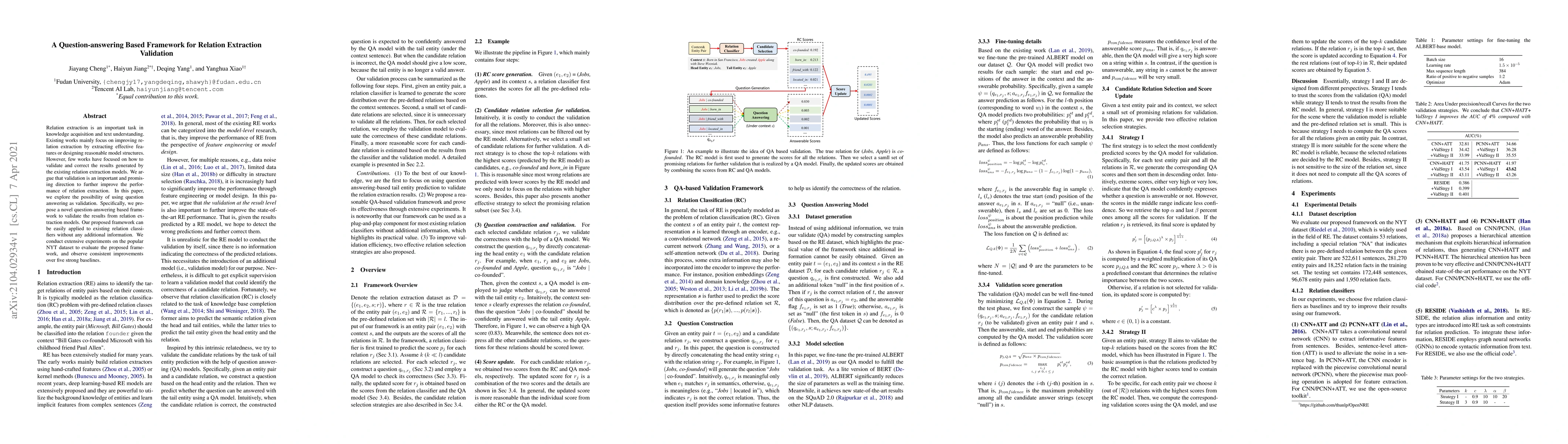 This paper proposes a question-answering based framework to validate the results of relation extraction models, arguing that validation is crucial for performance improvement. The framework, which requires no additional information, shows consistent improvements over five baselines when tested on the NYT dataset.