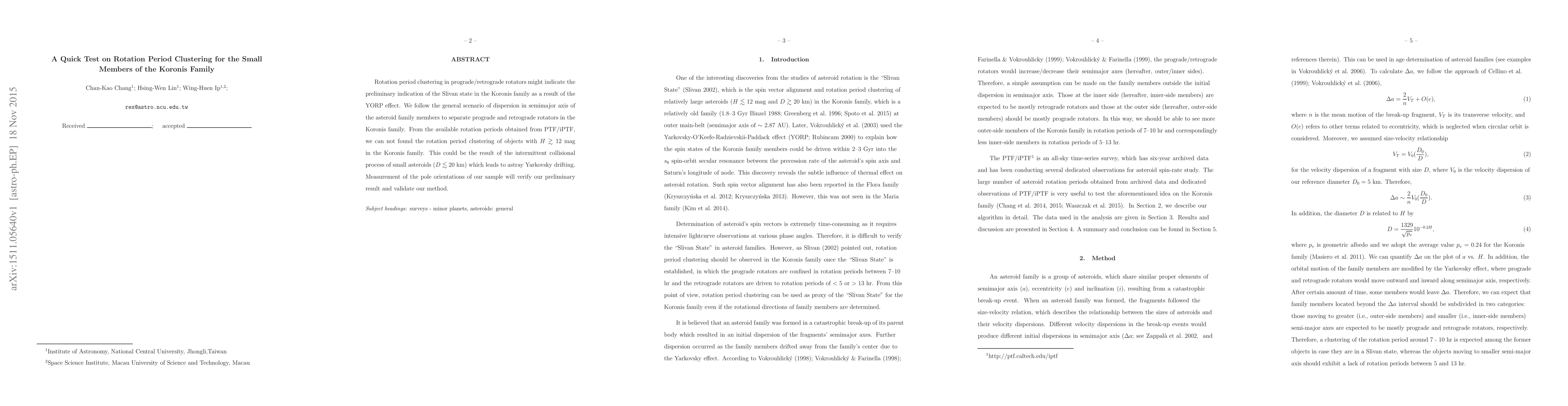 Rotation period clustering in prograde/retrograde rotators might indicate the preliminary indication of the Slivan state in the Koronis family as a result of the YORP effect. We follow the general scenario of dispersion in semimajor axis of the asteroid family members to separate prograde and retrograde rotators in the Koronis family. From the available rotation periods obtained from PTF/iPTF, we can not found the rotation period clustering of objects with H grater than 12 mag in the Koronis family. This could be the result of the intermittent collisional process of small asteroids (D less than ~20 km) which leads to astray Yarkovsky drifting. Measurement of the pole orientations of our sample will verify our preliminary result and validate our method.