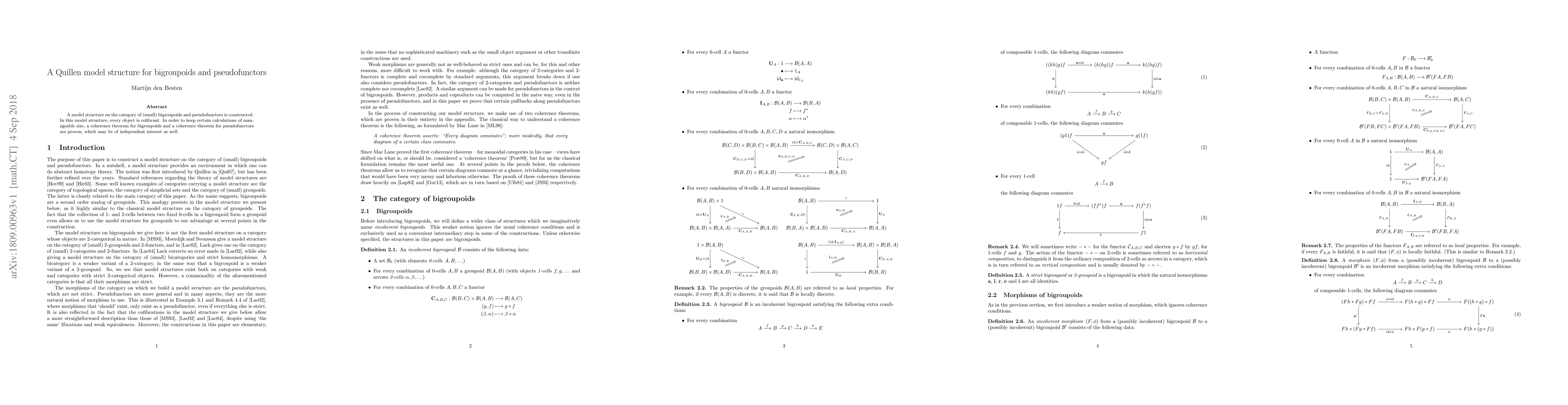 This paper constructs a Quillen model structure on the category of bigroupoids and pseudofunctors, where every object is cofibrant. Additionally, it proves coherence theorems for both bigroupoids and pseudofunctors, which could be of independent interest.