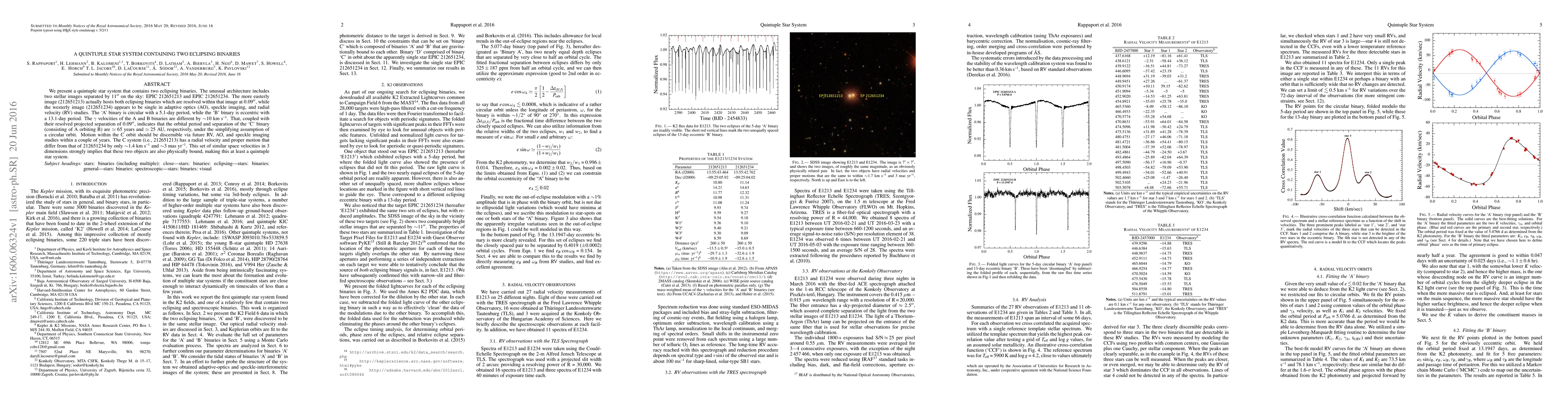 This paper describes a complex quintuple star system featuring two eclipsing binaries within a single stellar image, while another image appears single. The system's intricate architecture suggests long-term orbital dynamics and potential physical binding among all components.