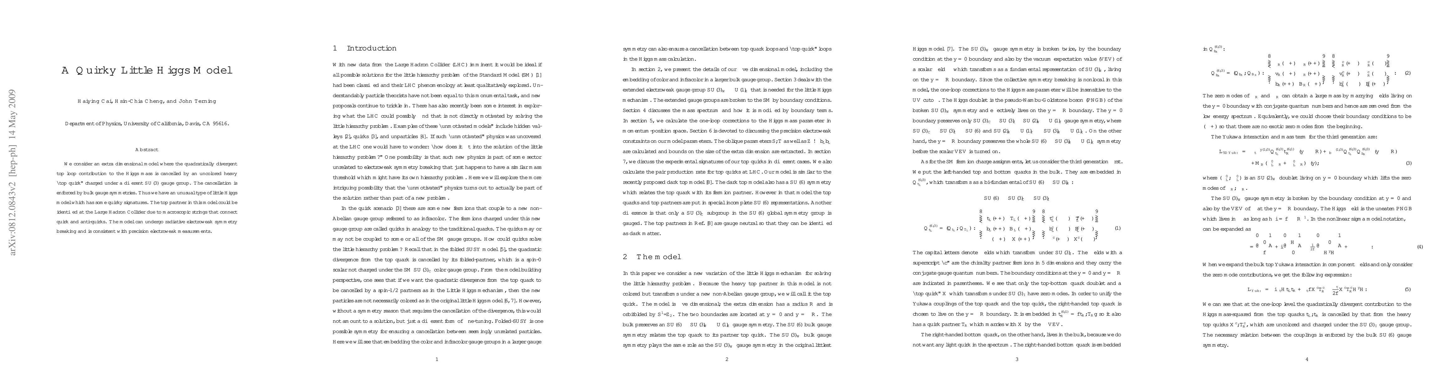 This paper proposes an extra-dimensional little Higgs model where a heavy "top quirk" cancels top-loop contributions to the Higgs mass via bulk gauge symmetries. The model predicts identifiable macroscopic strings at the LHC and is consistent with electroweak precision data.