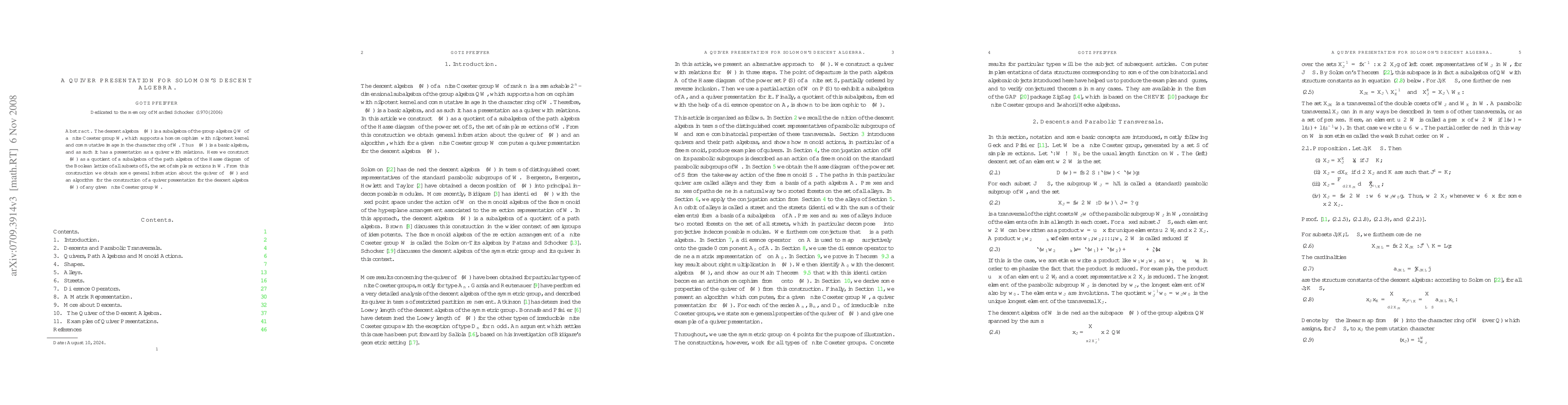 The descent algebra $\Sigma(W)$ is a subalgebra of the group algebra $\Q W$ of a finite Coxeter group $W$, which supports a homomorphism with nilpotent kernel and commutative image in the character ring of $W$. Thus $\Sigma(W)$ is a basic algebra, and as such it has a presentation as a quiver with relations. Here we construct $\Sigma(W)$ as a quotient of a subalgebra of the path algebra of the Hasse diagram of the Boolean lattice of all subsets of $S$, the set of simple reflections in $W$. From this construction we obtain some general information about the quiver of $\Sigma(W)$ and an algorithm for the construction of a quiver presentation for the descent algebra $\Sigma(W)$ of any given finite Coxeter group $W$.