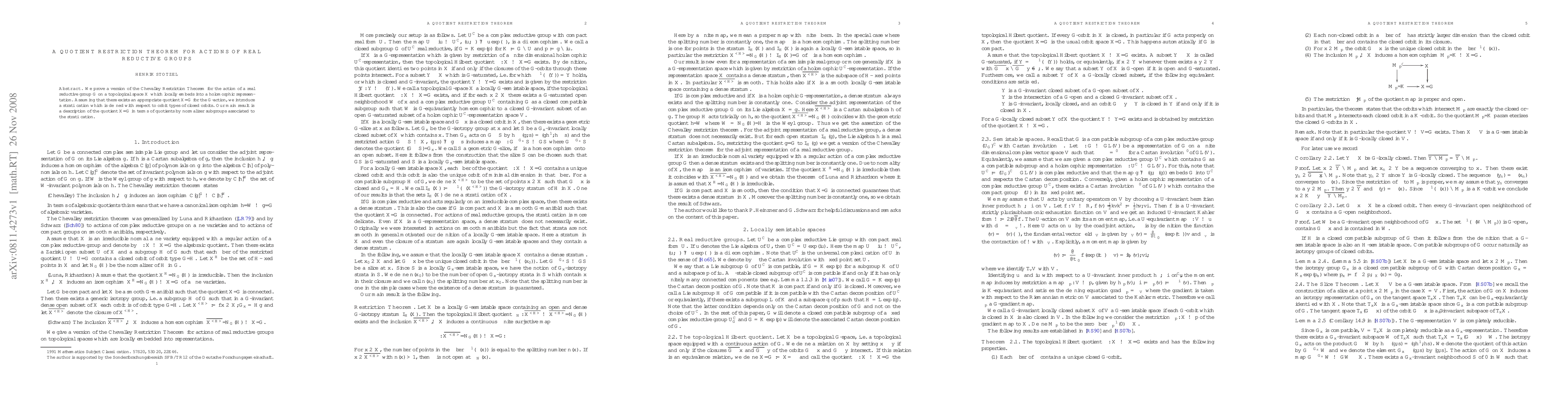 This paper proves a version of the Chevalley Restriction Theorem for real reductive groups acting on a space embedded in a holomorphic representation, introducing a stratification based on orbit types. The main result describes the quotient space X//G in terms of quotients by normalizer subgroups linked to the stratification.