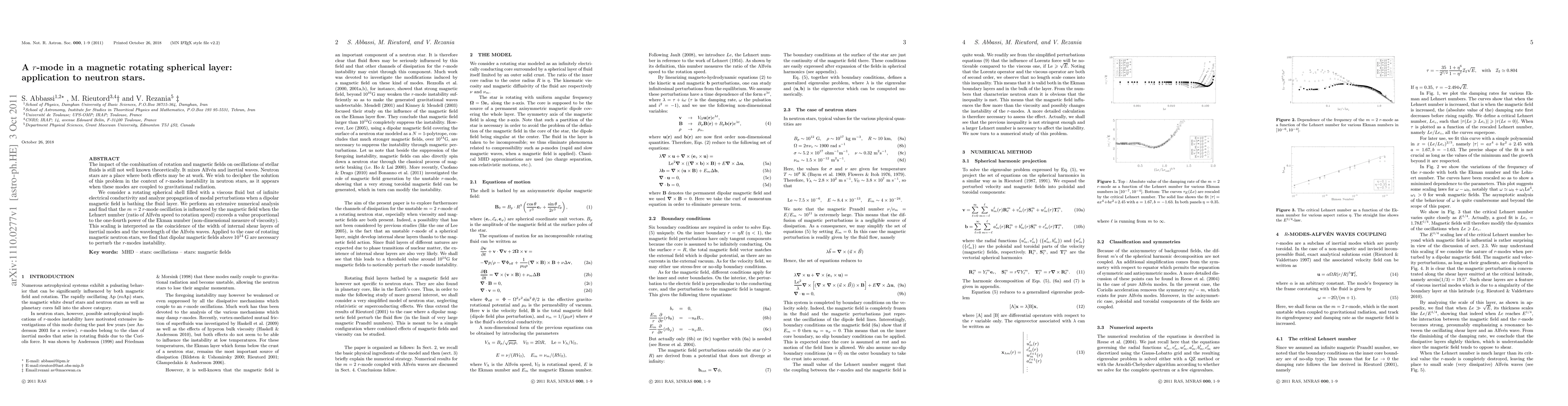 The impact of the combination of rotation and magnetic fields on oscillations of stellar fluids is still not well known theoretically. It mixes Alfv\'en and inertial waves. Neutron stars are a place where both effects may be at work. We wish to decipher the solution of this problem in the context of $r$-modes instability in neutron stars, as it appears when these modes are coupled to gravitational radiation. We consider a rotating spherical shell filled with a viscous fluid but of infinite electrical conductivity and analyze propagation of modal perturbations when a dipolar magnetic field is bathing the fluid layer. We perform an extensive numerical analysis and find that the $m=2$ $r$-mode oscillation is influenced by the magnetic field when the Lehnert number (ratio of Alfv\'en speed to rotation speed) exceeds a value proportional to the one-fourth power of the Ekman number (non-dimensional measure of viscosity). This scaling is interpreted as the coincidence of the width of internal shear layers of inertial modes and the wavelength of the Alfv\'en waves. Applied to the case of rotating magnetic neutron stars, we find that dipolar magnetic fields above $10^{14}$ G are necessary to perturb the $r$-modes instability.