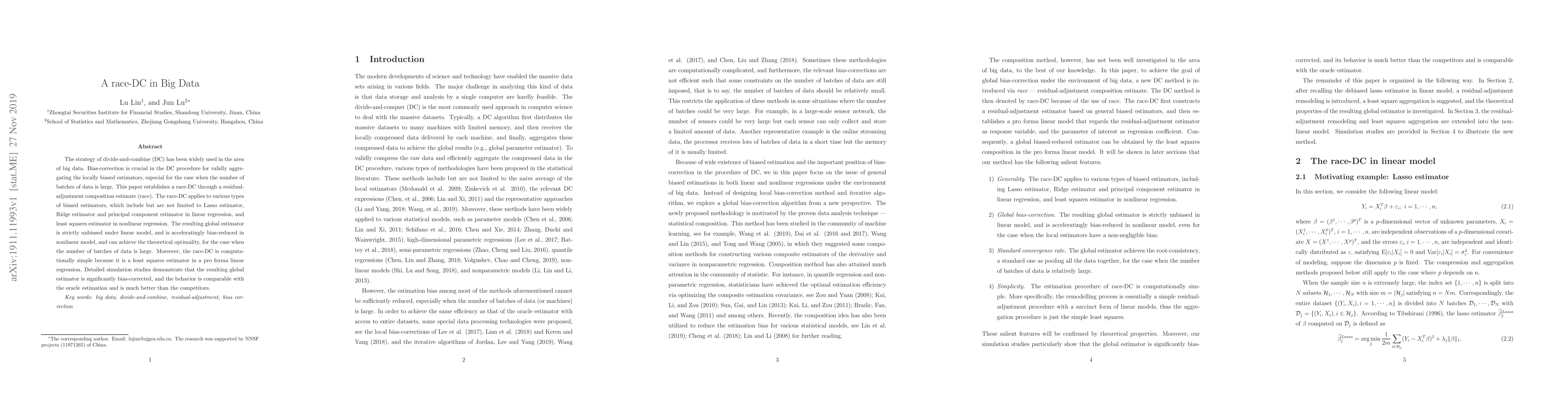 This paper proposes a race-DC strategy to correct bias in divide-and-combine methods for big data analysis, ensuring unbiased global estimators under linear models and significantly reducing bias in nonlinear models. The method is computationally efficient and outperforms competitors in simulations.