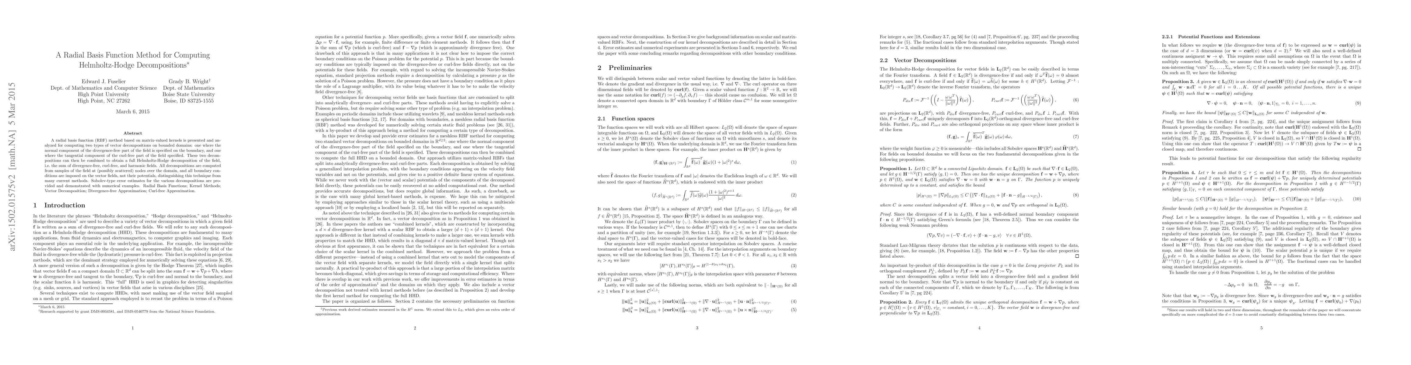 The paper introduces a matrix-valued RBF method for Helmholtz-Hodge decompositions, providing a systematic approach to impose boundary conditions directly on vector fields.