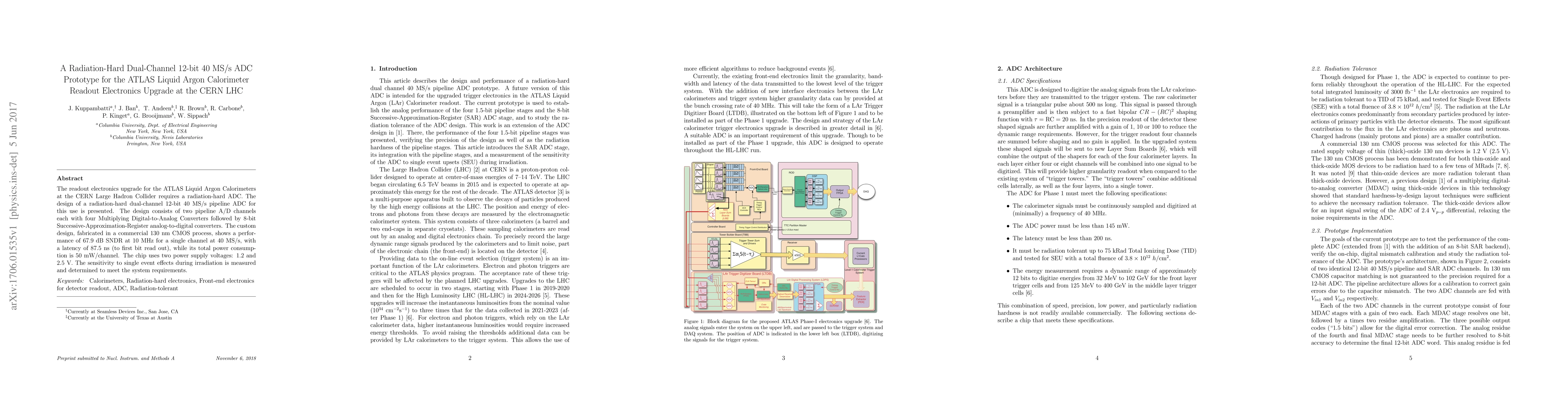 This paper presents a radiation-hard dual-channel 12-bit 40 MS/s ADC designed for the ATLAS Liquid Argon Calorimeters upgrade at CERN LHC, featuring a pipeline architecture and custom 130 nm CMOS fabrication, achieving 67.9 dB SNDR at 10 MHz with low power consumption and high radiation tolerance.