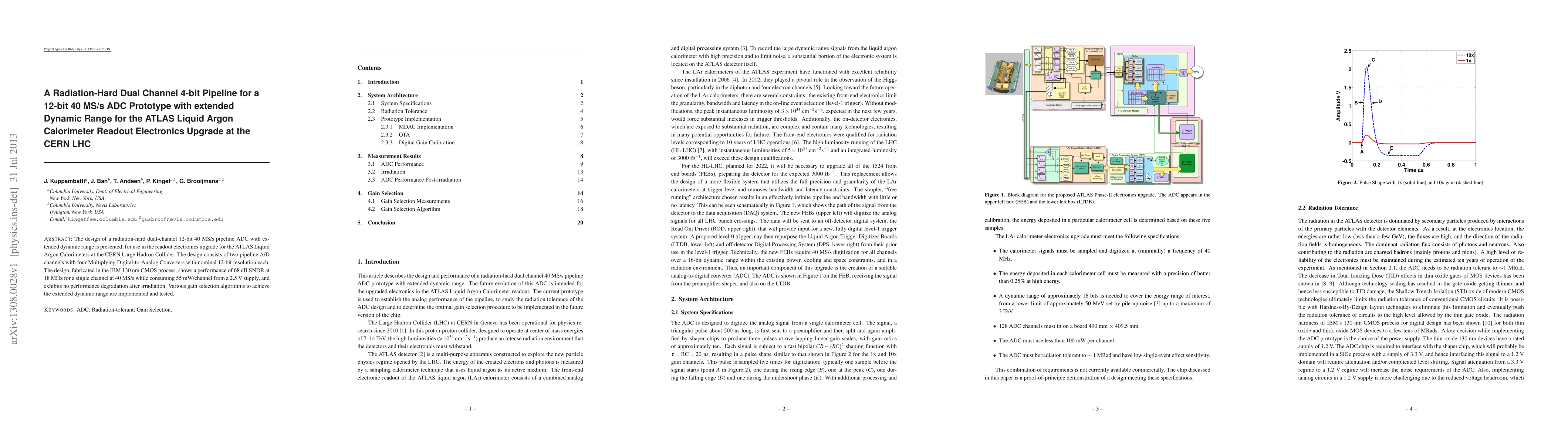 This paper presents a radiation-hard dual channel 4-bit pipeline ADC designed for the ATLAS Liquid Argon Calorimeters upgrade at CERN LHC, featuring extended dynamic range and fabricated in IBM 130 nm CMOS process, achieving 68 dB SNDR at 18 MHz while consuming 55 mW/channel. The design demonstrates no performance degradation post-irradiation.