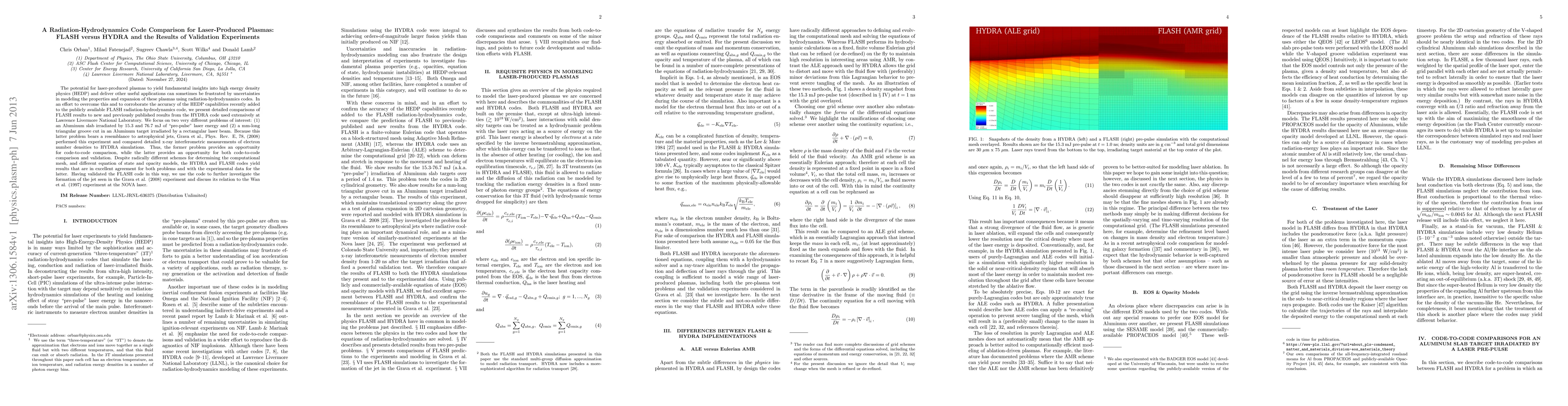 The potential for laser-produced plasmas to yield fundamental insights into high energy density physics (HEDP) and deliver other useful applications can sometimes be frustrated by uncertainties in modeling the properties and expansion of these plasmas using radiation-hydrodynamics codes. In an effort to overcome this and to corroborate the accuracy of the HEDP capabilities recently added to the publicly available FLASH radiation-hydrodynamics code, we present detailed comparisons of FLASH results to new and previously published results from the HYDRA code used extensively at Lawrence Livermore National Laboratory. We focus on two very different problems of interest: (1) an Aluminum slab irradiated by 15.3 and 76.7 mJ of "pre-pulse" laser energy and (2) a mm-long triangular groove cut in an Aluminum target irradiated by a rectangular laser beam. Because this latter problem bears a resemblance to astrophysical jets, Grava et al., Phys. Rev. E, 78, (2008) performed this experiment and compared detailed x-ray interferometric measurements of electron number densities to HYDRA simulations. Thus, the former problem provides an opportunity for code-to-code comparison, while the latter provides an opportunity for both code-to-code comparison and validation. Despite radically different schemes for determining the computational mesh, and different equation of state and opacity models, the HYDRA and FLASH codes yield results that are in excellent agreement for both problems and with the experimental data for the latter. Having validated the FLASH code in this way, we use the code to further investigate the formation of the jet seen in the Grava et al. (2008) experiment and discuss its relation to the Wan et al. (1997) experiment at the NOVA laser.