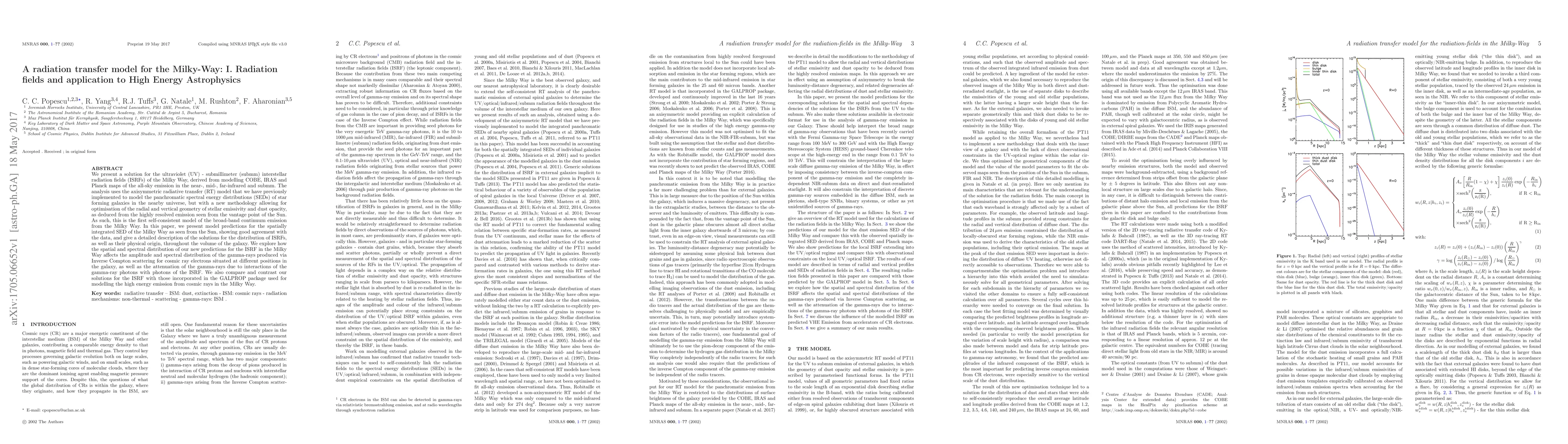 We present a solution for the ultraviolet (UV) - submillimeter (submm) interstellar radiation fields (ISRFs) of the Milky Way, derived from modelling COBE, IRAS and Planck maps of the all-sky emission in the near-, mid-, far-infrared and submm.The analysis uses the axisymmetric radiative transfer (RT) model that we have previously implemented to model the panchromatic spectral energy distributions (SEDs) of star forming galaxies in the nearby universe, but with a new methodology allowing for optimisation of the radial and vertical geometry of stellar emissivity and dust opacity, as deduced from the highly resolved emission seen from the vantage point of the Sun. As such, this is the first self-consistent model of the broad-band continuum emission from the Milky Way. In this paper, we present model predictions for the spatially integrated SED of the Milky Way as seen from the Sun, showing good agreement with the data, and give a detailed description of the solutions for the distribution of ISRFs, as well as their physical origin, throughout the volume of the galaxy. We explore how the spatial and spectral distribution of our new predictions for the ISRF in the Milky Way affects the amplitude and spectral distribution of the gamma-rays produced via Inverse Compton scattering for cosmic ray electrons situated at different positions in the galaxy, as well as the attenuation of the gamma-rays due to interactions of the gamma-ray photons with photons of the ISRF. We also compare and contrast our solutions for the ISRF with those incorporated in the GALPROP package used for modelling the high energy emission from cosmic rays in the Milky Way.