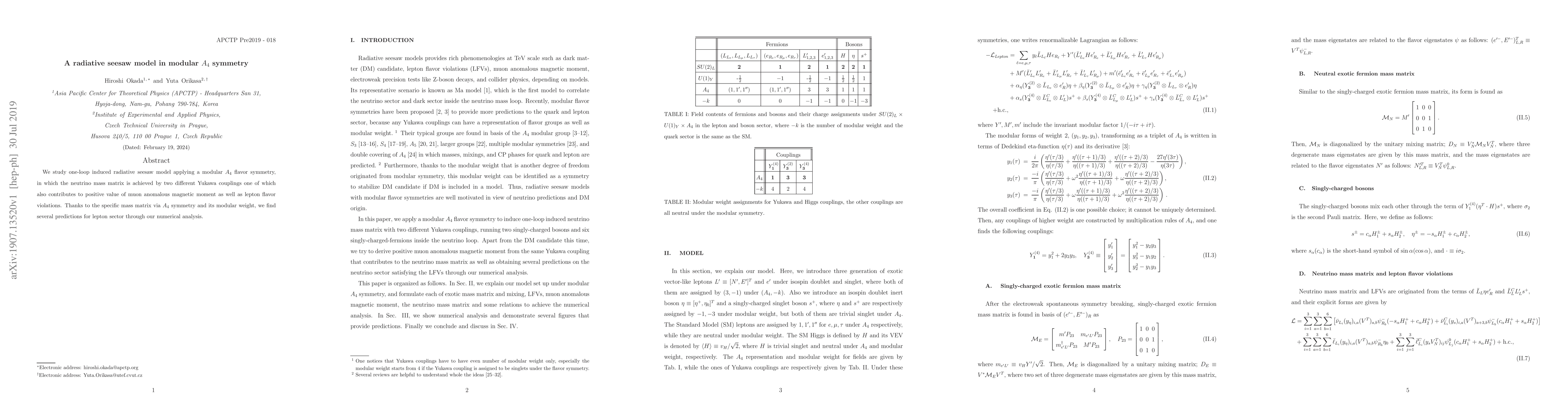 This paper explores a radiative seesaw model under modular $A_4$ symmetry, where neutrino masses arise from one-loop processes and Yukawa couplings. It predicts lepton flavor violations and a positive muon anomalous magnetic moment, with numerical analysis yielding specific predictions for the lepton sector.