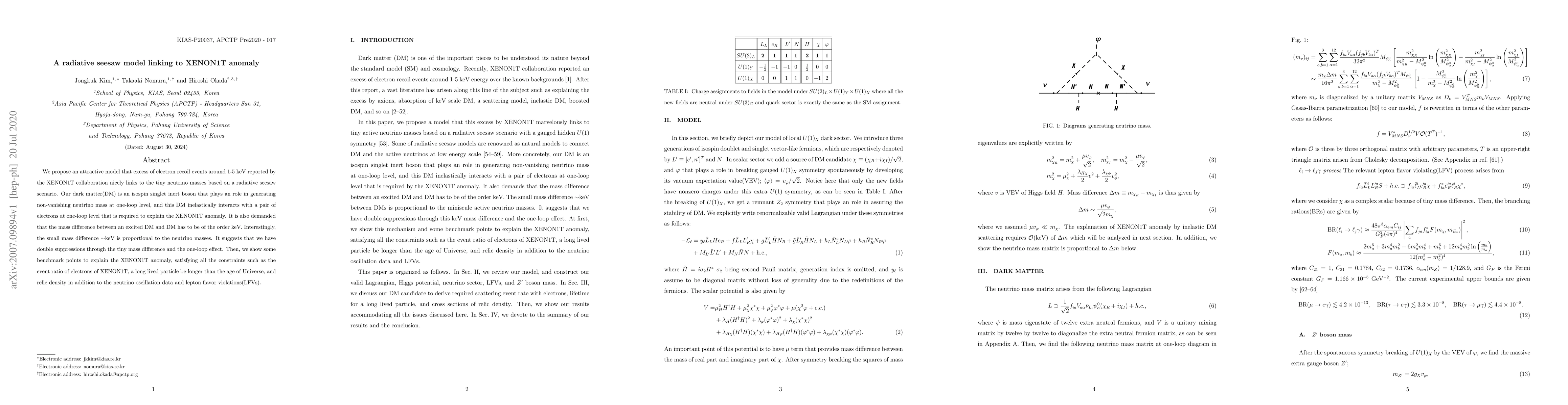 A new model proposes that a tiny dark matter particle causes an anomaly in XENON1T experiments, linking to tiny neutrino masses through radiative seesaw effects.
