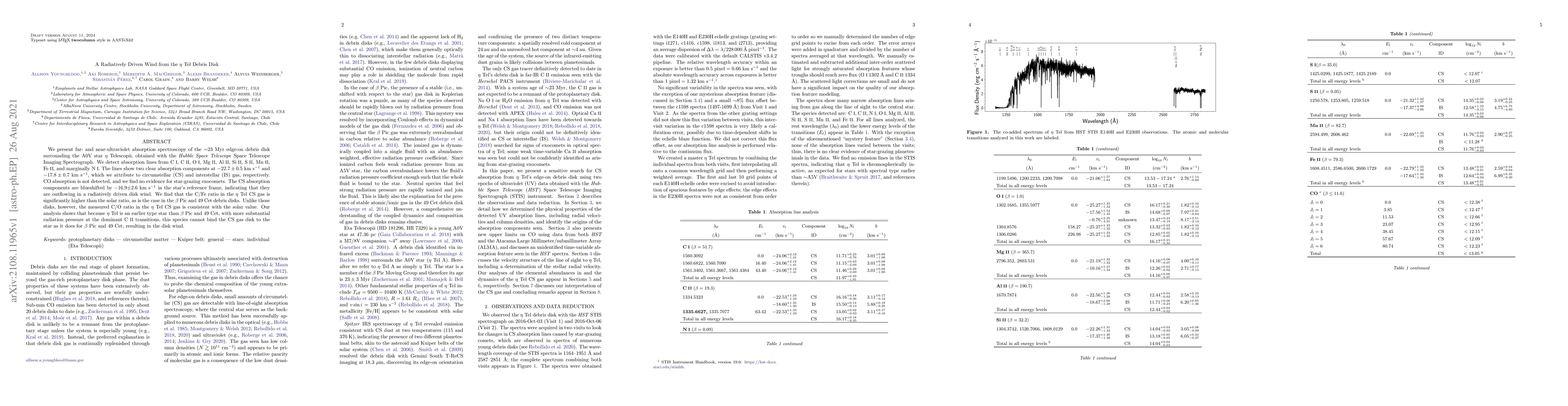 Astronomers discovered a radiatively driven wind in the debris disk surrounding star eta Tel, with absorption lines indicating outflowing gas at high speeds. This suggests that radiation pressure from the star is blowing away material from the disk.