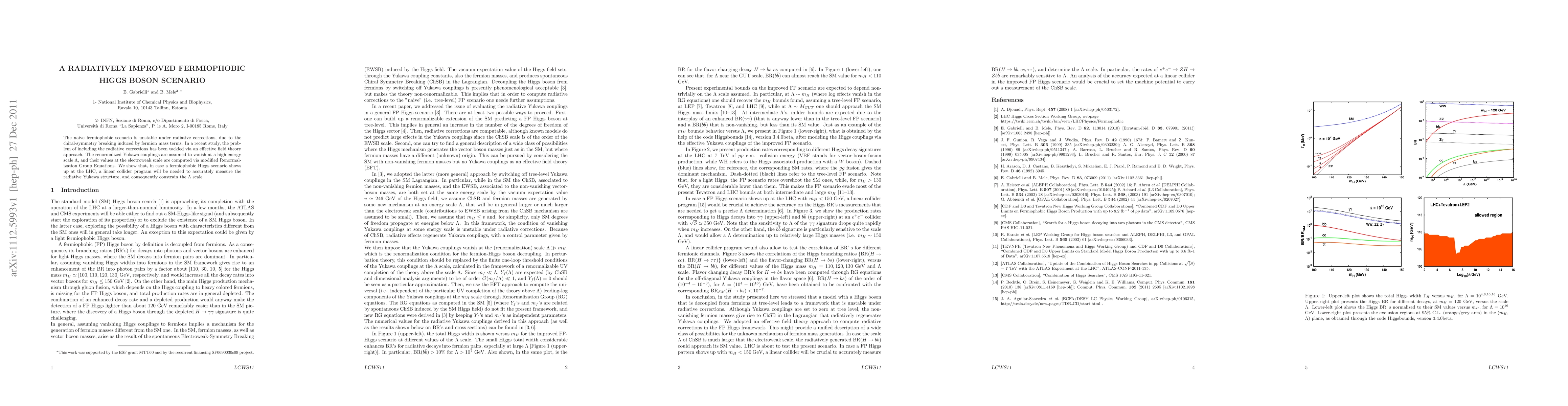 The naive fermiophobic scenario is unstable under radiative corrections, due to the chiral-symmetry breaking induced by fermion mass terms. In a recent study, the problem of including the radiative corrections has been tackled via an effective field theory approach. The renormalized Yukawa couplings are assumed to vanish at a high energy scale $\Lambda$, and their values at the electroweak scale are computed via modified Renormalization Group Equations. We show that, in case a fermiophobic Higgs scenario shows up at the LHC, a linear collider program will be needed to accurately measure the radiative Yukawa structure, and consequently constrain the $\Lambda$ scale.