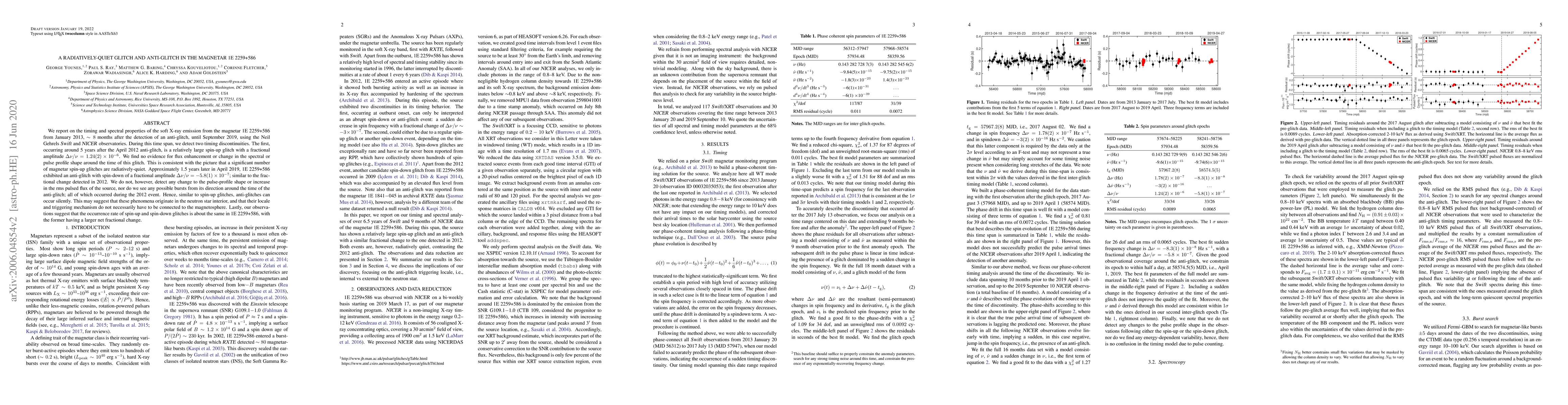This paper reports on two timing discontinuities in the magnetar 1E 2259+586, a spin-up glitch and an anti-glitch, both occurring without significant radiative changes, suggesting they originate in the neutron star interior rather than the magnetosphere.