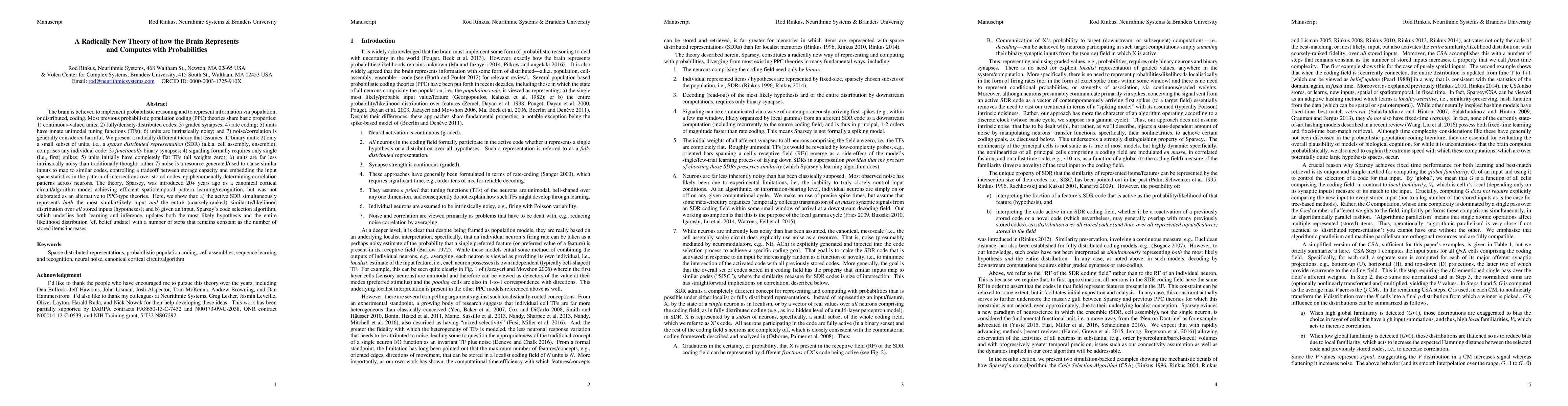 A new brain theory, Sparsey, proposes that the brain uses a sparse distributed representation to represent and compute probabilities, offering a radically different alternative to existing population-based probabilistic theories.