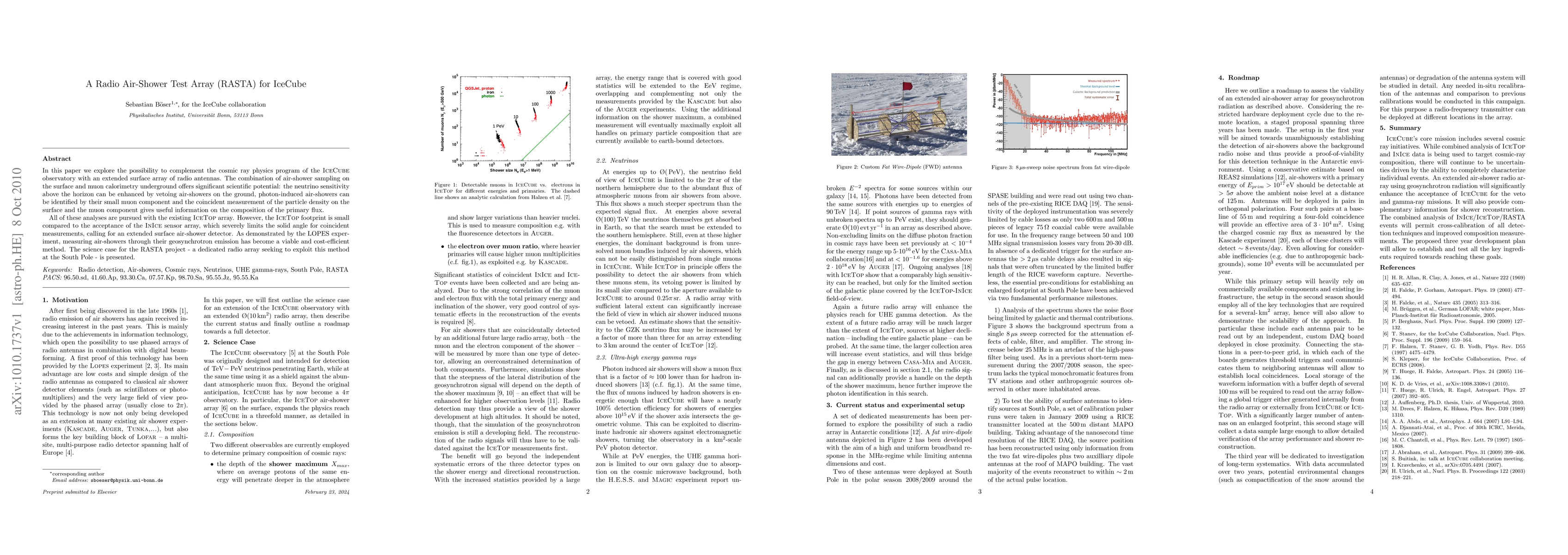 This paper proposes the RASTA radio air-shower test array to complement the IceCube observatory's cosmic ray physics program by enhancing neutrino sensitivity and identifying photon-induced air-showers through an extended surface array of radio antennas. The proposed array aims to improve the detection of air-shower particles and primary flux composition by measuring geosynchrotron emissions.