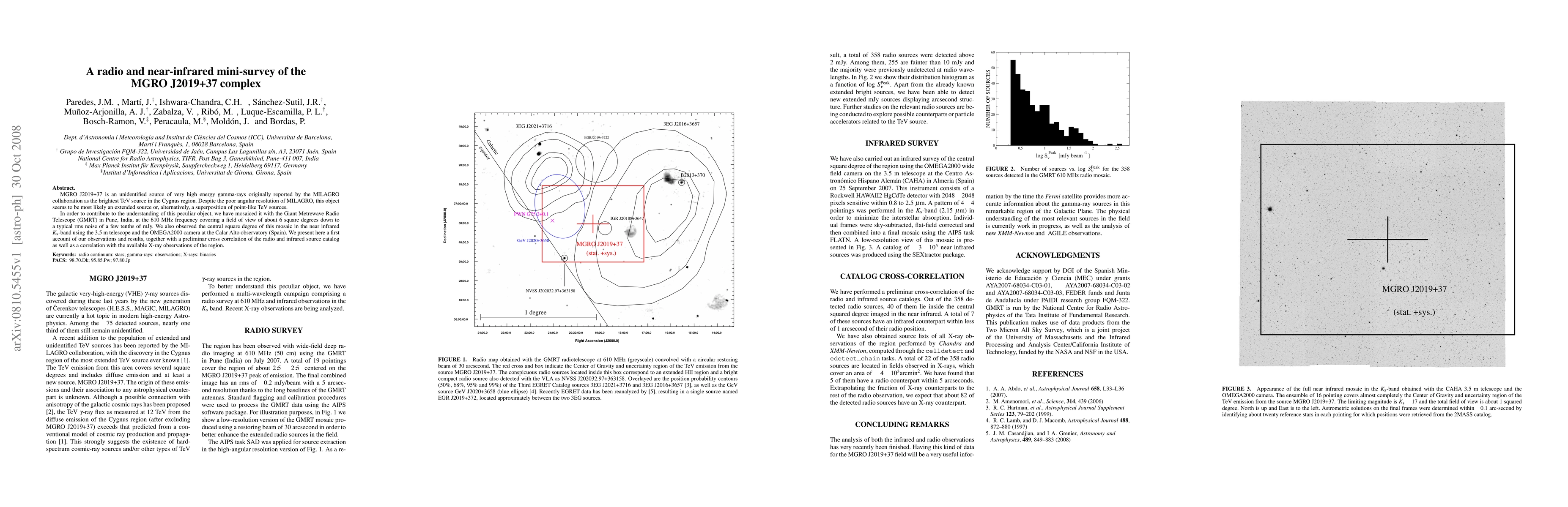 This research observes MGRO J2019+37, a mysterious gamma-ray source, using the GMRT radio telescope and the Calar Alto near-infrared telescope. Findings include radio and infrared observations, with preliminary correlations with X-ray data, aiming to understand this enigmatic object.