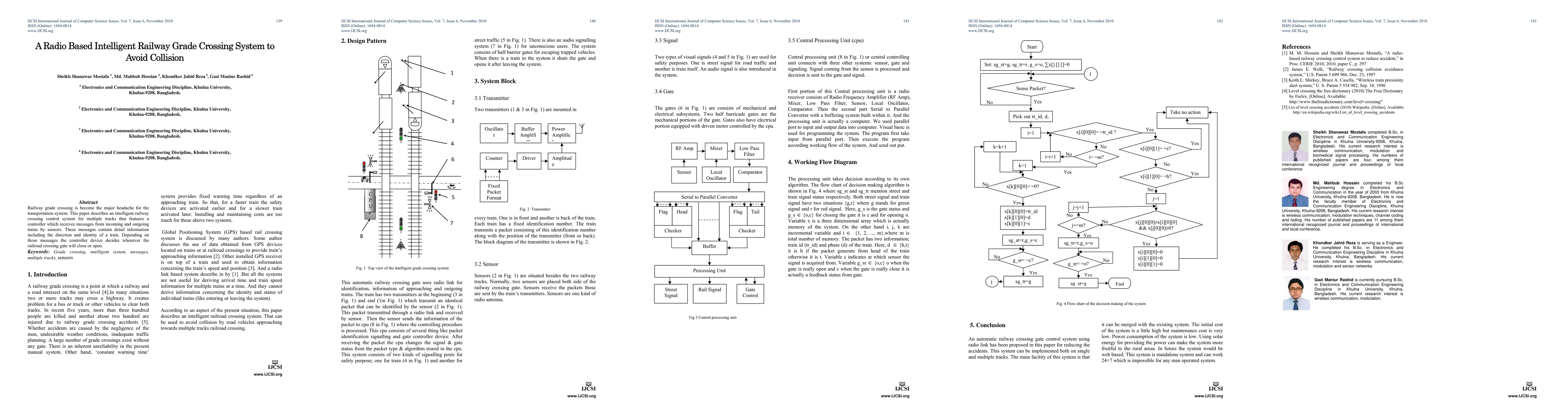 This paper proposes an intelligent railway grade crossing system using radio-based sensors to receive train details, enabling the controller to manage crossing gate operations to prevent collisions. The system aims to enhance safety at multiple track crossings.