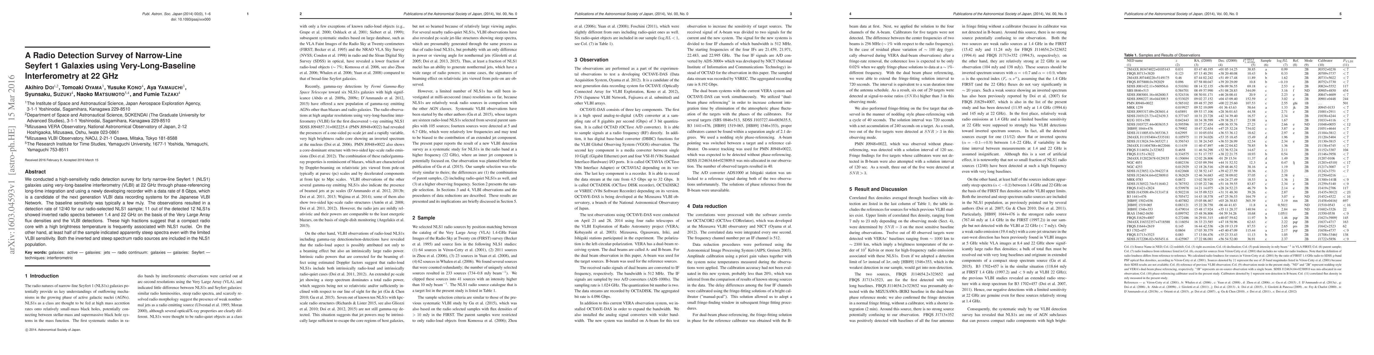 This study used VLBI at 22 GHz to detect radio emissions from 40 narrow-line Seyfert 1 galaxies, achieving a detection rate of 30%. Most detected galaxies exhibited inverted radio spectra, indicating a compact radio core with high brightness temperature.